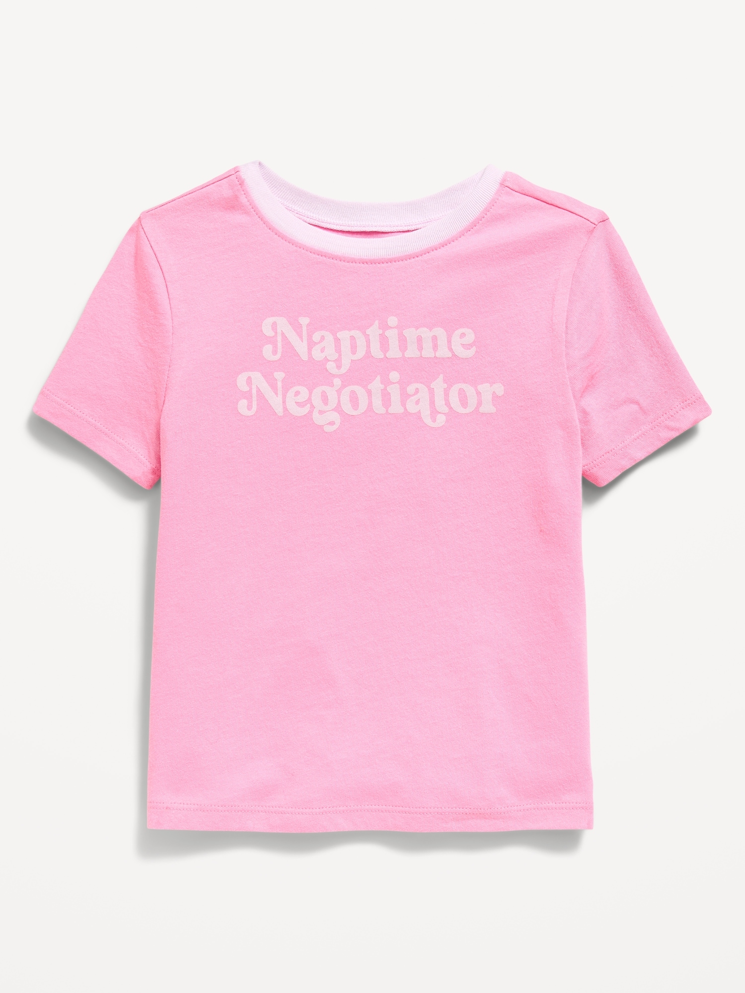 تي شيرت برسومات بأكمام قصيرة من Old Navy للفتيات الصغيرات - HYDRANGEA PINK - 3T
