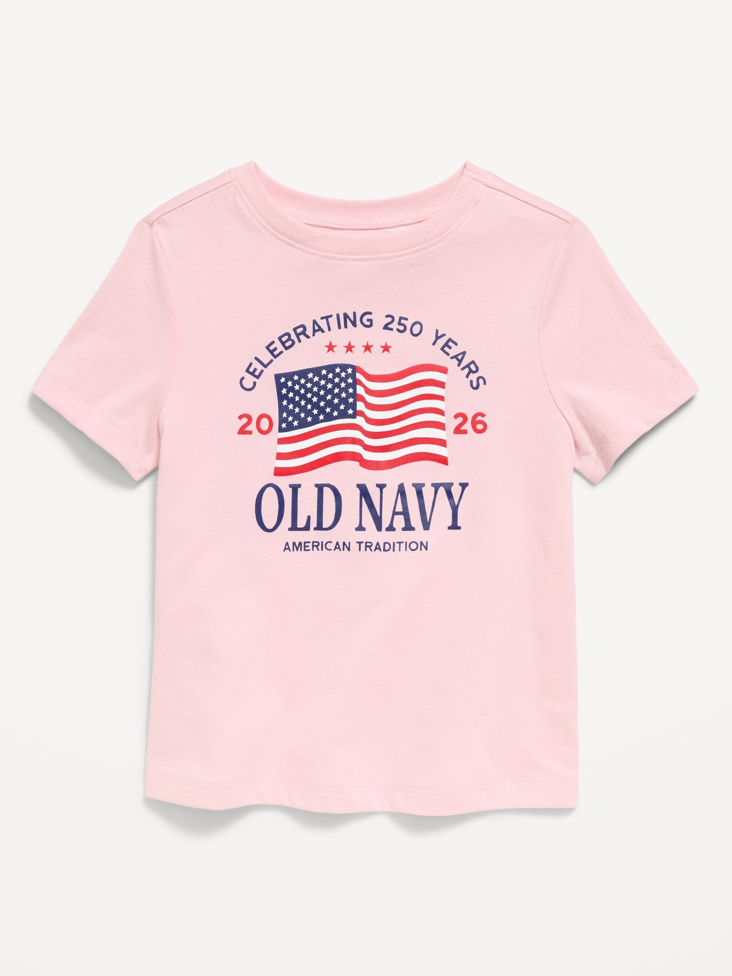 تي شيرت مطبوع عليه شعار بأكمام قصيرة للجنسين من Old Navy للأطفال الصغار - لون أحمر خدود - 2T