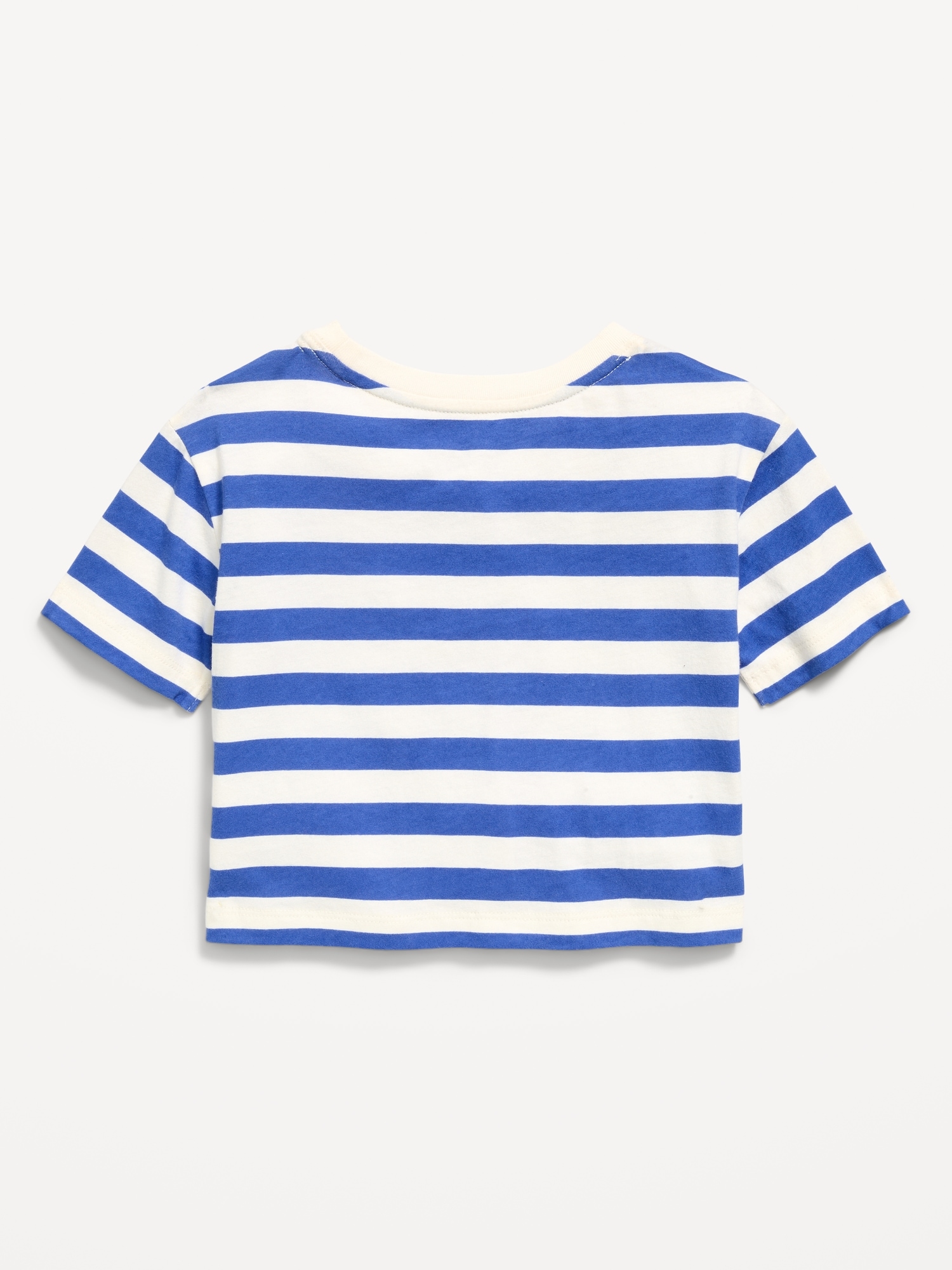 تي شيرت برسومات قصيرة الأكمام للفتيات الصغيرات من Old Navy - مخطط باللون الأبيض والأزرق - 18-24 M