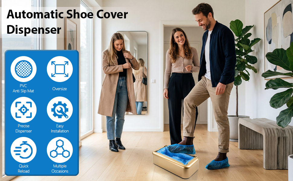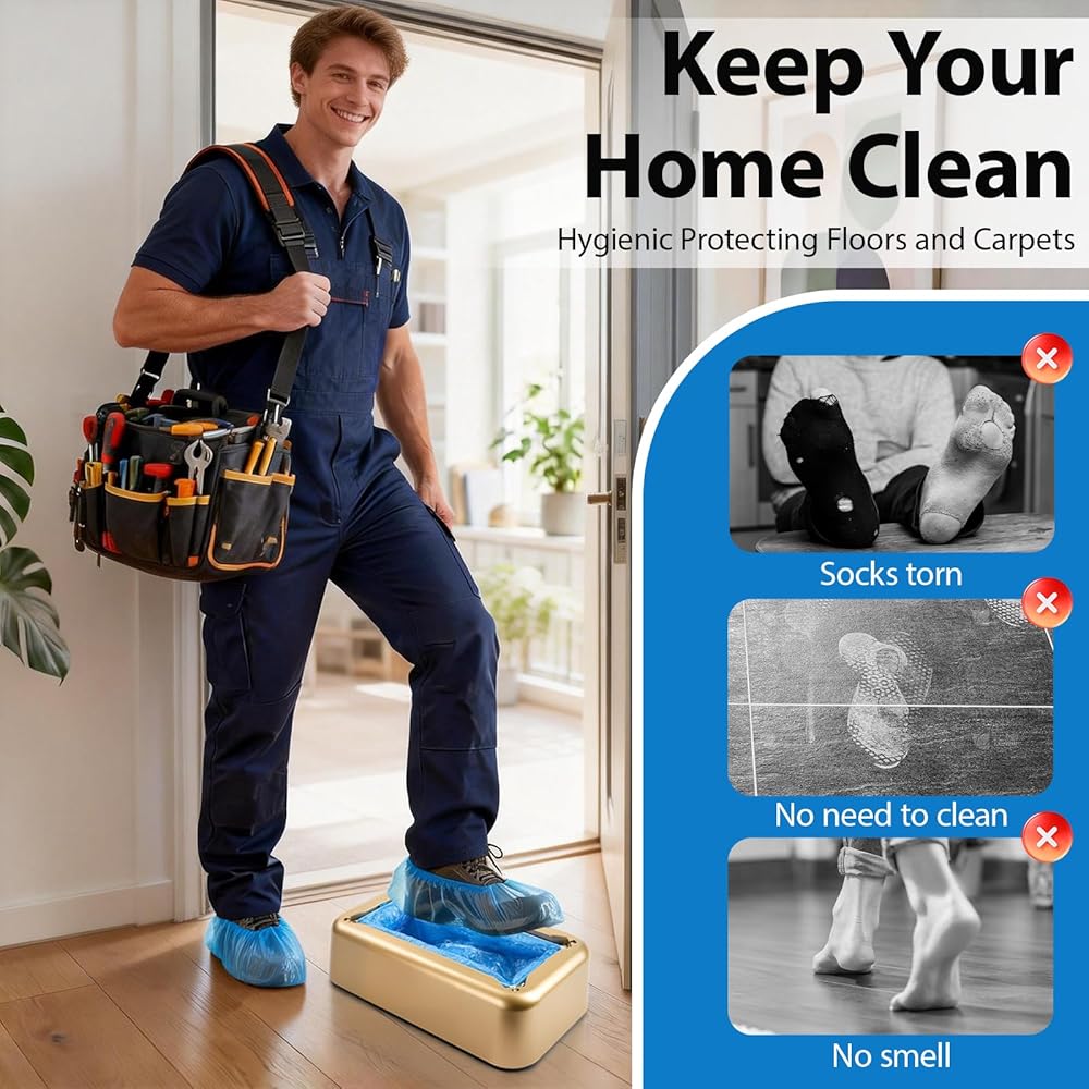 • أوتوماتيكية واقتصادية: تعمل ماكينة تغطية الأحذية الذهبية المتينة هذه بدون كهرباء، حيث تقوم بوضع الأغطية في ثانية واحدة - مما يوفر الوقت ويحافظ على نظافة الأرضيات. لا ينحني ولا يسبب فوضى، ضعه عند المدخل مما يوفر حماية مريحة وصحية لأرضياتك