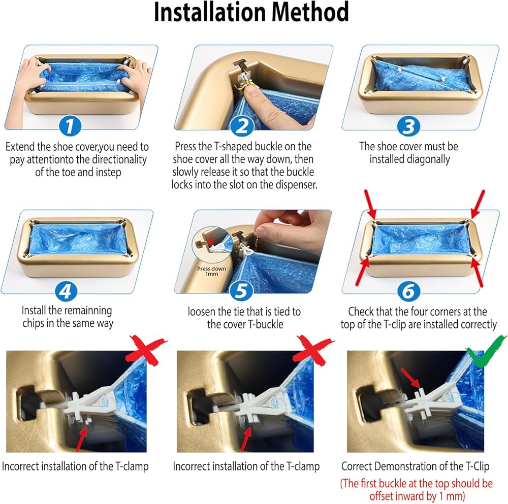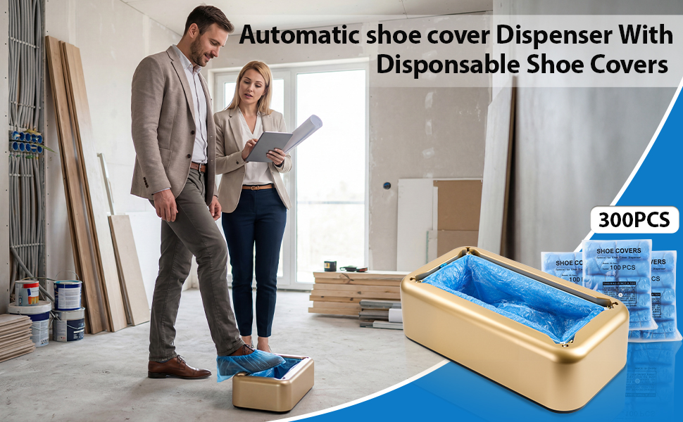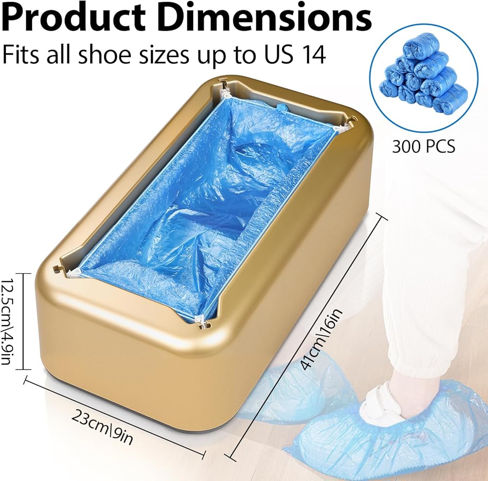 ماكينة توزيع غطاء الأحذية الأوتوماتيكية مع 300 قطعة من أغطية الأحذية البلاستيكية للاستعمال مرة واحدة، عملية بسيطة ومريحة للعقارات المنزلية والمكاتب، تناسب حتى مقاس 14 (ذهبي)