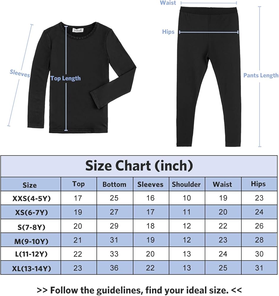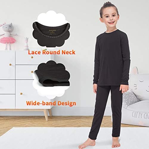 ✭[ارتديه في أي وقت] رقبة دائرية من الدانتيل، نسيج صديق للبشرة، ليس فضفاضًا أو ضيقًا من الأعلى والأسفل، مجموعة الملابس الداخلية الحرارية للأطفال مثالية للملابس الداخلية أو لقضاء يوم خارج المنزل. يمكن ارتداء الفتيات الحراريات الدافئة كبيجامة مريحة في الليالي الباردة والباردة أيضًا.