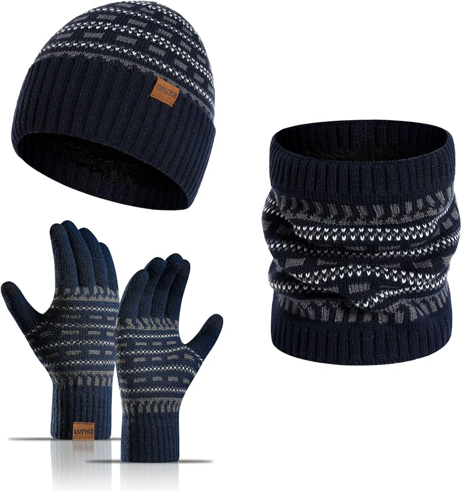 • قبعة صغيرة متماسكة للشتاء: واحدة من مجموعة وشاح قفازات القبعة للرجال، قبعة بنسيج ناعم، صديقة للبشرة وجيدة التهوية. بطانة مزدوجة الطبقات مع مخملية، دافئة ومريحة، مجموعة قفازات الوشاح وشاشة اللمس يمكن تمديدها بشكل جيد جدًا ويمكن أن تكون مناسبة لمعظم الرجال والنساء، مجموعة وشاح القبعة الرجالية تجعلك تبدو أنيقًا للغاية وتحافظ على الدفء في الشتاء البارد