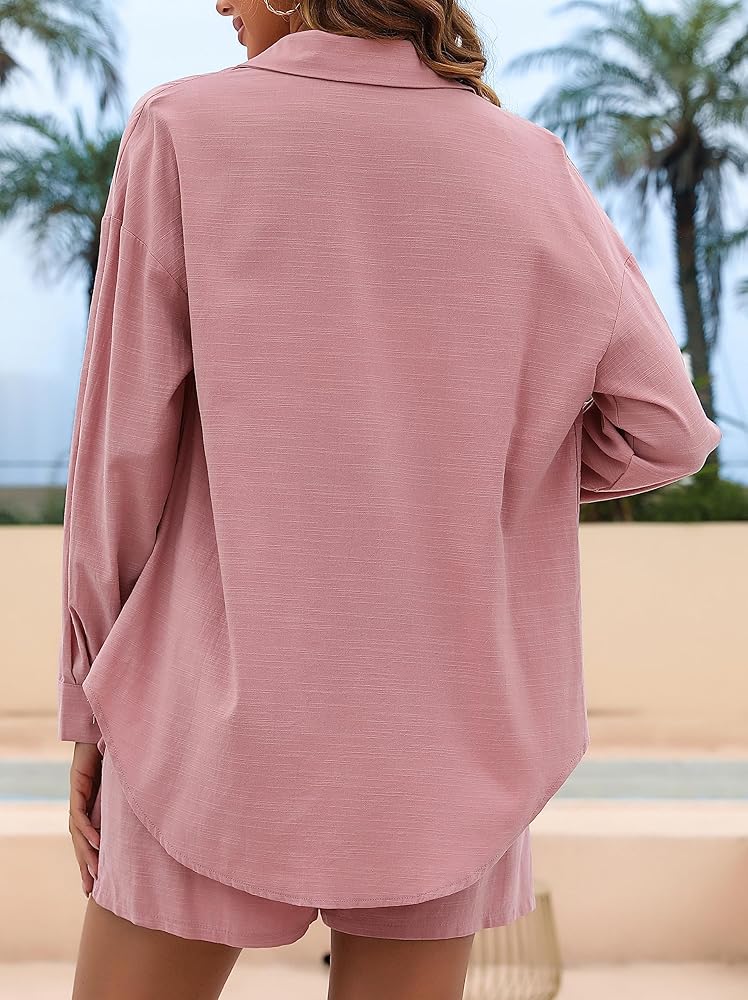 مقاس فضفاض: هذه المجموعة المكونة من قطعتين تتضمن قمصانًا كبيرة الحجم مع جيوب وسروال قصير على شكل حرف A مع رباط يوفر ملاءمة مريحة لسهولة الحركة والراحة.
