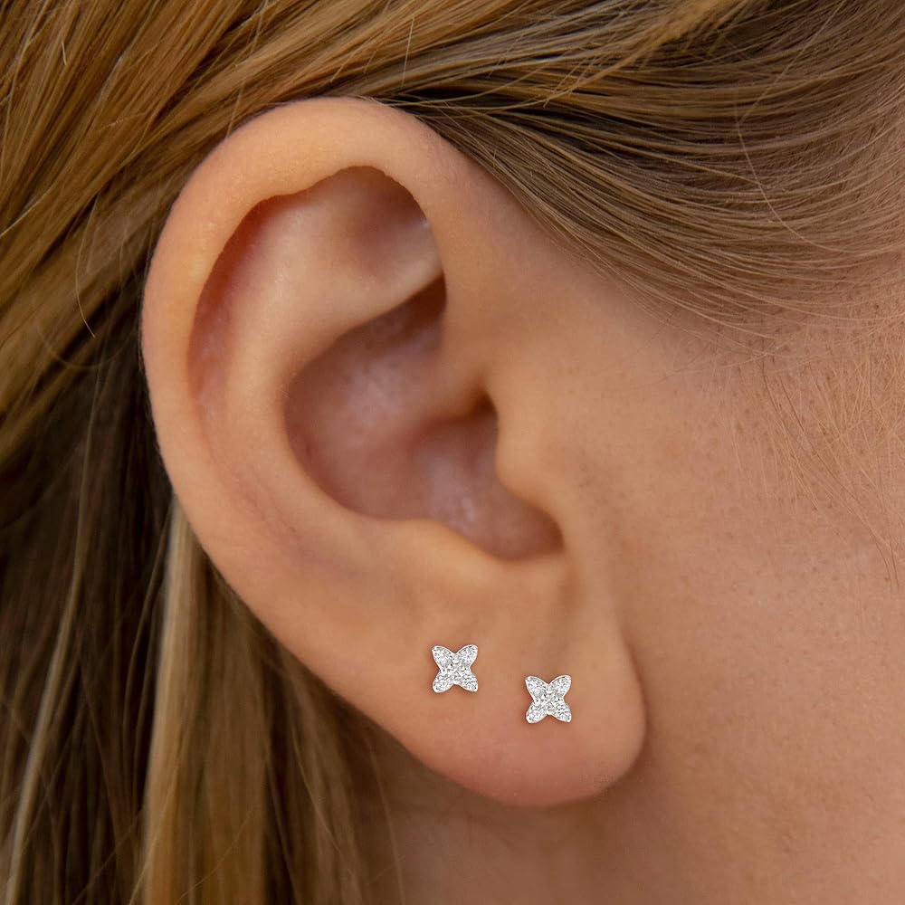 نمط كلاسيكي: هذه الأقراط المرصعة الرقيقة ذات الظهر المسطح تبدو أنيقة للغاية مع تصميم جميل وخاص، أقراط واحدة بسيطة ولكنها أنيقة من الفضة الإسترلينية للغضروف تعطي مظهرًا أنيقًا لكل يوم.