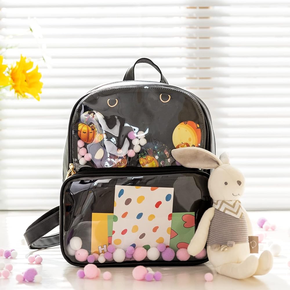 ⭐ Double Front Display Window: There are two front clear window to display pins, buttons, dolls. And you do not to lose your pins or dolls. You can decor your bag with your own ideas. Very special.