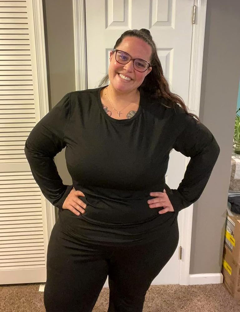 【أطقم حرارية طويلة للنساء】تتوفر البيجامات ذات الحجم الكبير للنساء بمقاسات كبيرة مختلفة للنساء ذوات الانحناءات، كما توفر الألياف اللدنة المطاطية في 4 اتجاهات ملاءمة مريحة ومسامية، مما يسمح بحرية كبيرة في الحركة. يتيح التصميم المريح المرونة، بينما تعمل الخياطة المسطحة على التخلص من الحكة المزعجة الناتجة عن الاحتكاك.