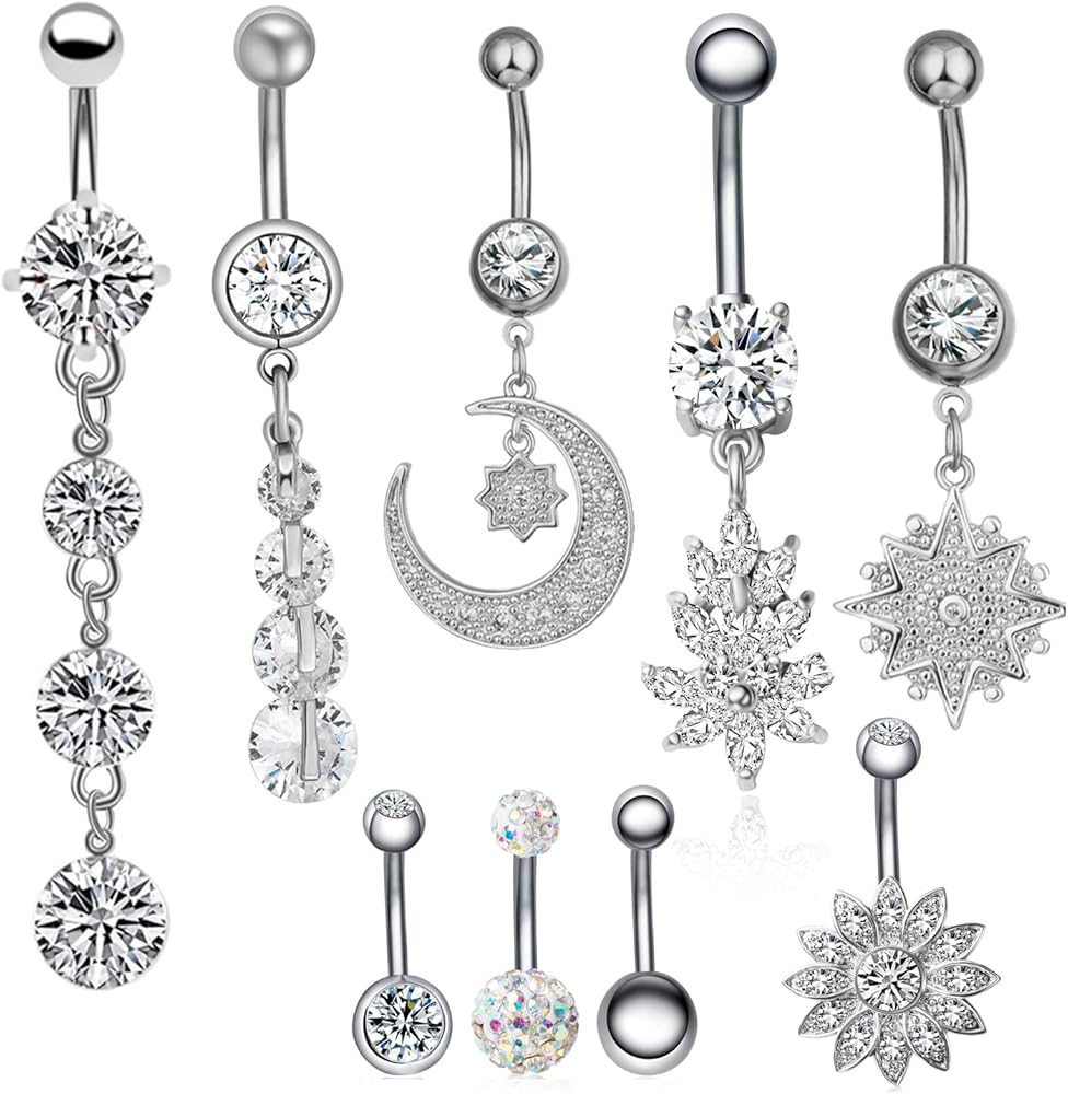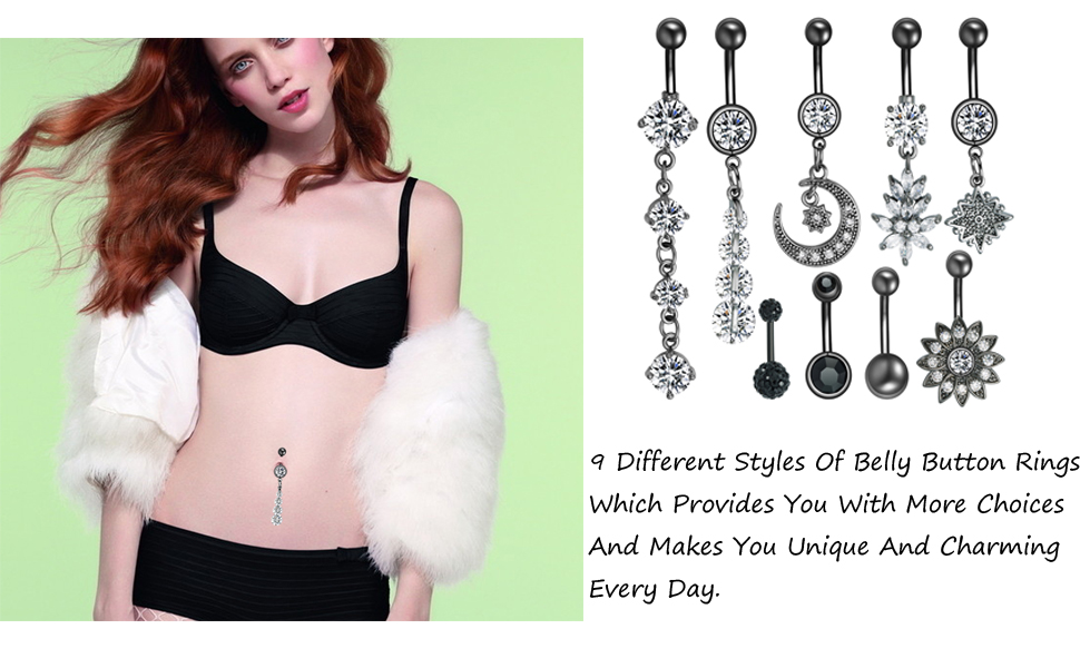 ★Combination Design: One Order Includes 9 Different Styles Of Belly Button Rings, Which Provides You With More Choices And Makes You Unique And Charming Every Day.
