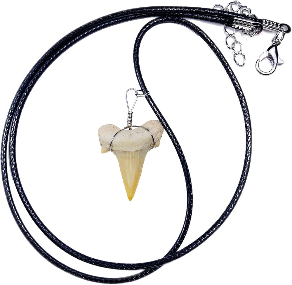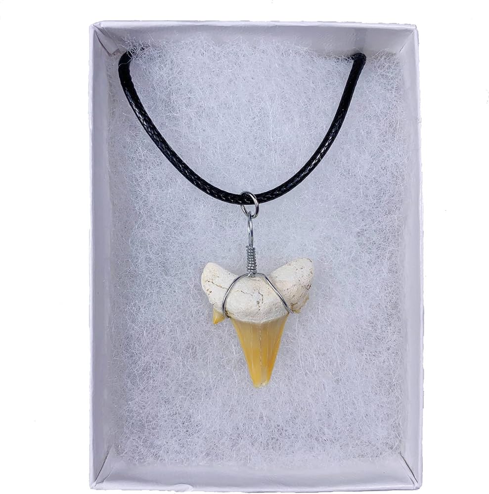 • قلادة أسنان سمك القرش الأحفوري حقيقية على سلك شمع قطني قابل للتعديل بطول 50.8 سم.