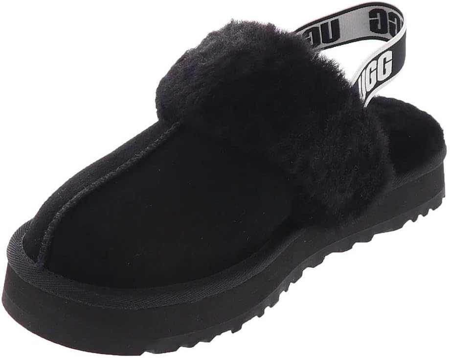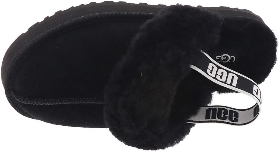 Smaller in size but big on style, the kids' Funkette keeps the same slip-on silhouette, bold platform, and soft lining as the original. Crafted from rich suede with a cozy sheepskin collar, we added a graphic UGG logo backstrap to help secure feet on the go. Pair with our matching women's slipper for cute mini-me photo ops.
