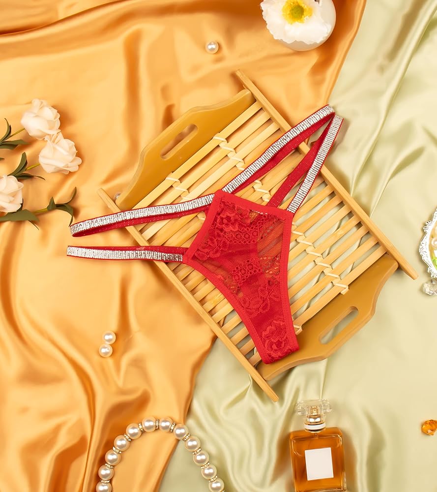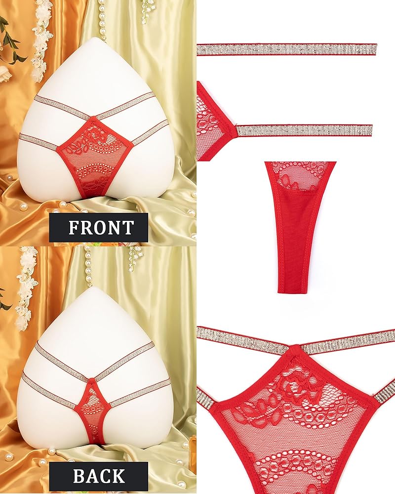 ثونج لامع: شريطان لامعان، لامع وساحر، قماش خفيف الوزن، نسيج دانتيل، نفاذية هواء جيدة.