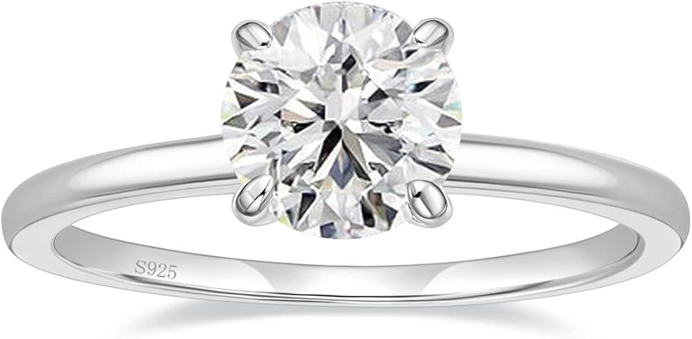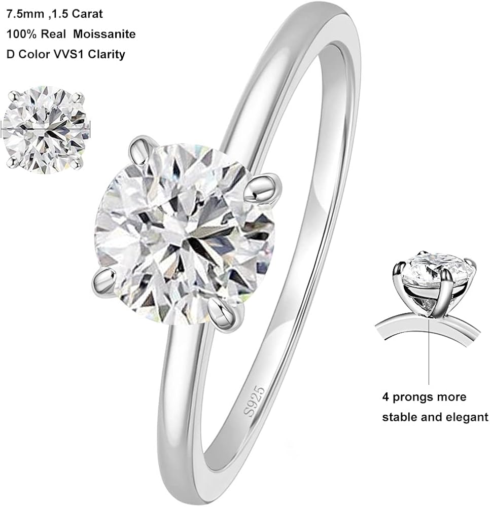 ♥ مويسانيتي حقيقي 100% ♥ حجر مويسانيتي شفاف دائري رائع بلون D VVS1، وهو صلب ولامع مثل الماس الطبيعي. خواتم الزفاف هذه مصنوعة من الفضة الإسترلينية 925 المطلية بالبلاتين ومربوطة بحلقات ذات 4 مخالب، ولا تسبب الحساسية وخالية من النيكل.