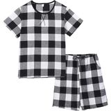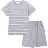 بيجامات قطنية ناعمة للأولاد الكبار مجموعة قصيرة ملابس نوم للمراهقين الصغار شرائط منقوشة 2 قطعة مقاس 10 12 14 16 18