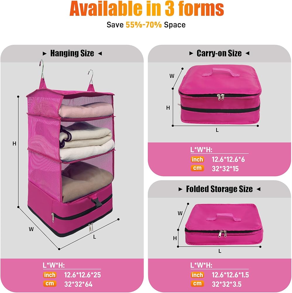 3 Usage: Hanging, luggage and compact storage. Hanging packing cubes for travel make quick unpacking and organization a breeze.