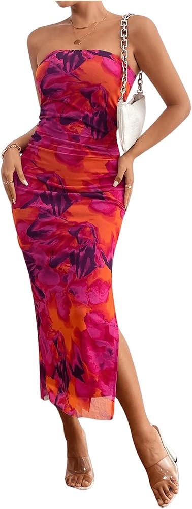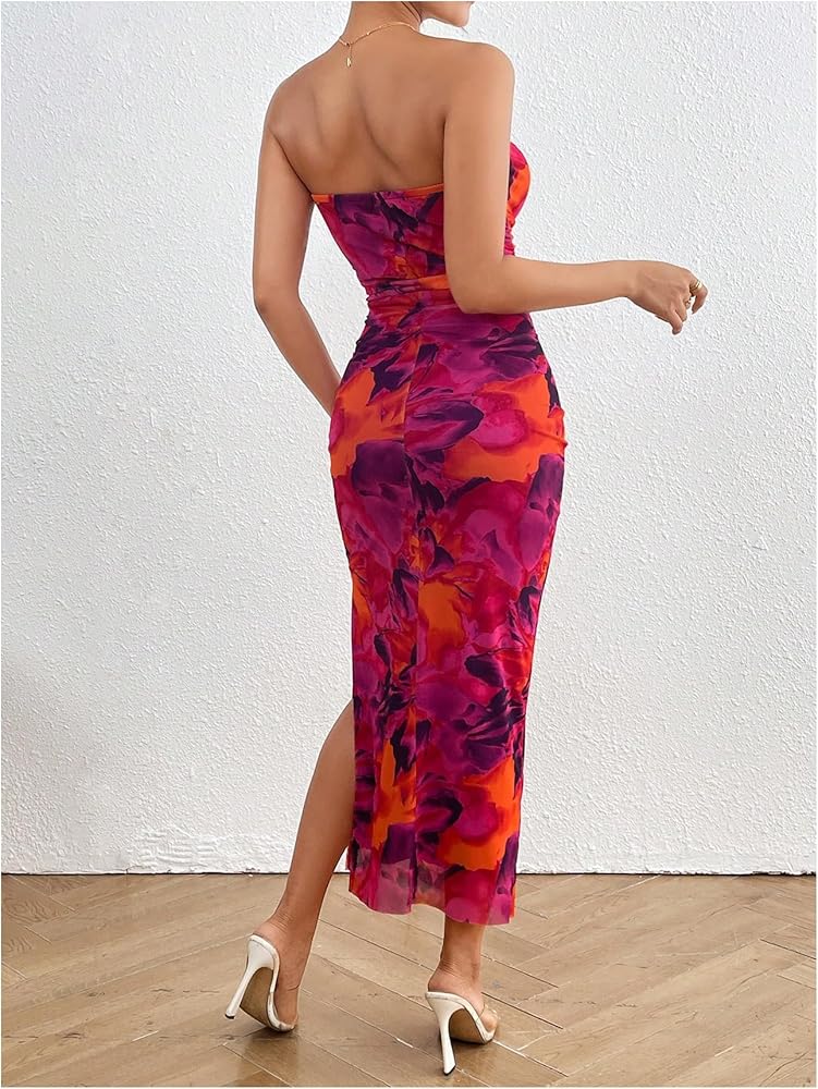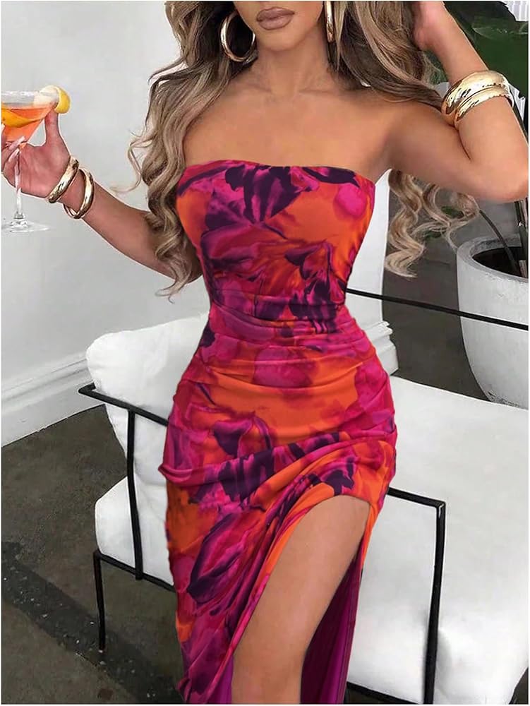 - المزايا: بدون حمالات، بدون أكمام، ظهر مقسوم، بوديكون، فستان ماكسي أنبوبي