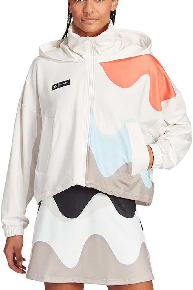 The eye-catching graphics on this women's adidas x Marimekko jacket will help you stand out on the way to the tennis court. The stretchy fabric, drawcord-adjustable hem and tapered sleeves keep you comfortable while you get ready for your match. Moisture-absorbing AEROREADY keeps you fresh when it's time for the real action to begin.