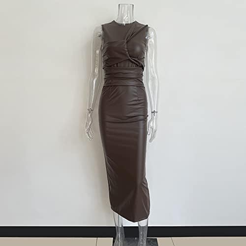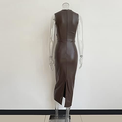 PU Leather,sexy,sleeveless,O-Neck,tight enough stretchy,not see through,back zippers,slim fitted and bodycon,fashion and elegant party club mid calf dress