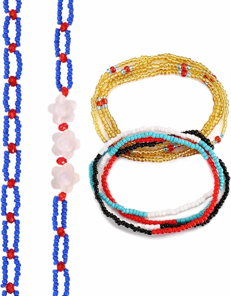 🌴【Handmade Waist Beads Set】🌴Length: 80 cm, after extension: 90 cm. They are handcrafted with quality glass seed beads, the color is very bright and transparent. They are durable and sturdy, not easy to deform and the color is not easy to fade. Easy to put on and take off. Good elastic and lightweight, comfortable to wear it. It will not burden your body. The exquisite beaded belly chain is an excellent decoration, making you feel more feminine and beautiful.