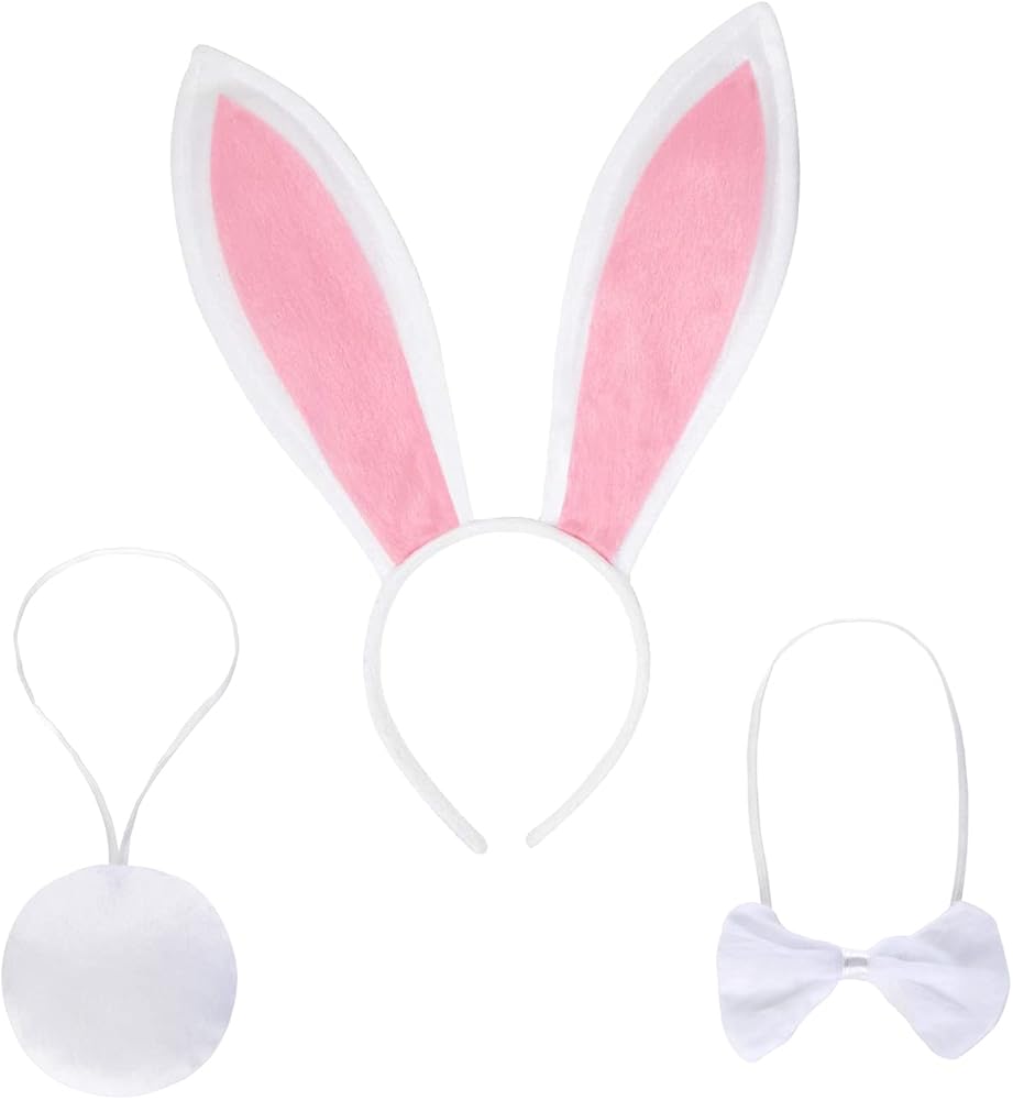 JIALWEN Bunny Ear Headband, Bowtie and Tail Dress Up Kit is ideal for dressing up for a party, Easter and Halloween.