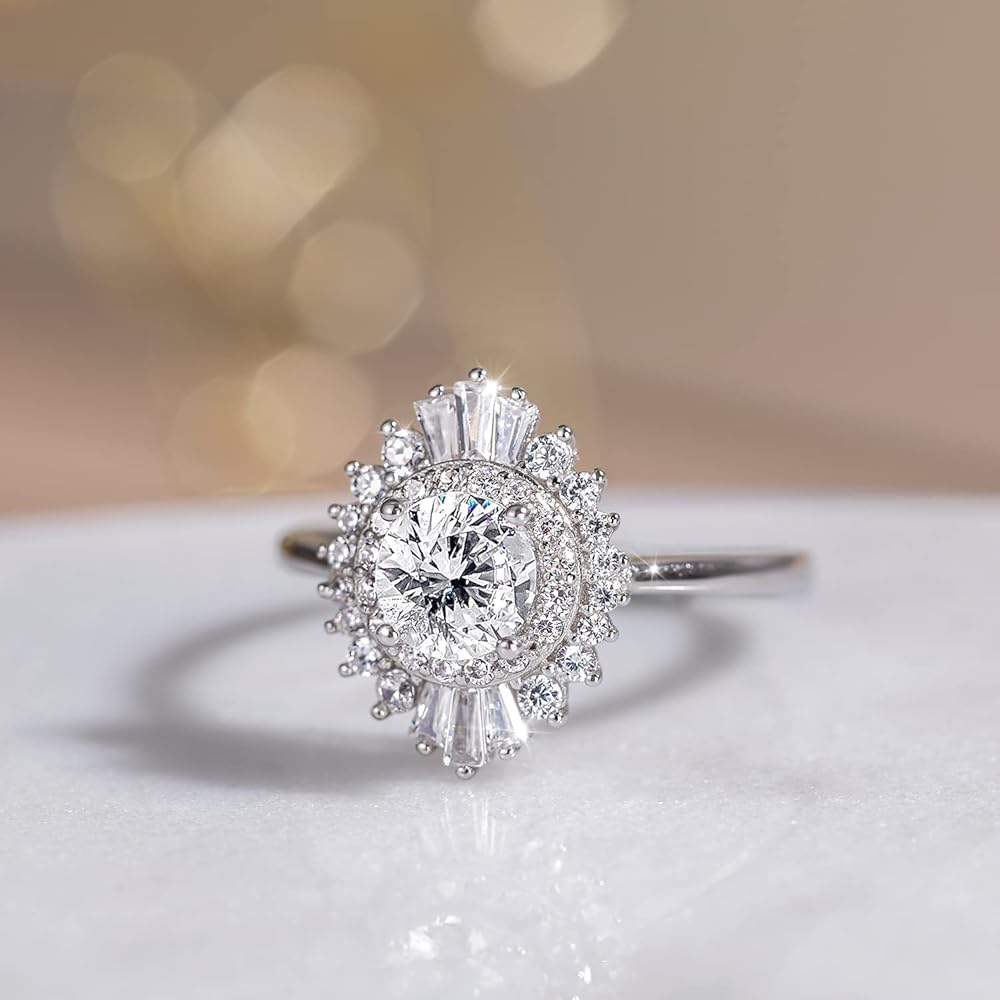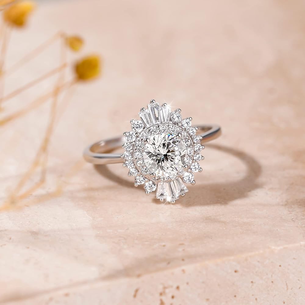 التصميم: حجر رئيسي 0.8 قيراط، 6x6 ملم. خاتم زفاف رائع ومستدير الشكل من تشيكوسلوفاكيا. خواتم خطوبة هالة مبهرة، مريحة للارتداء كخاتم يومي