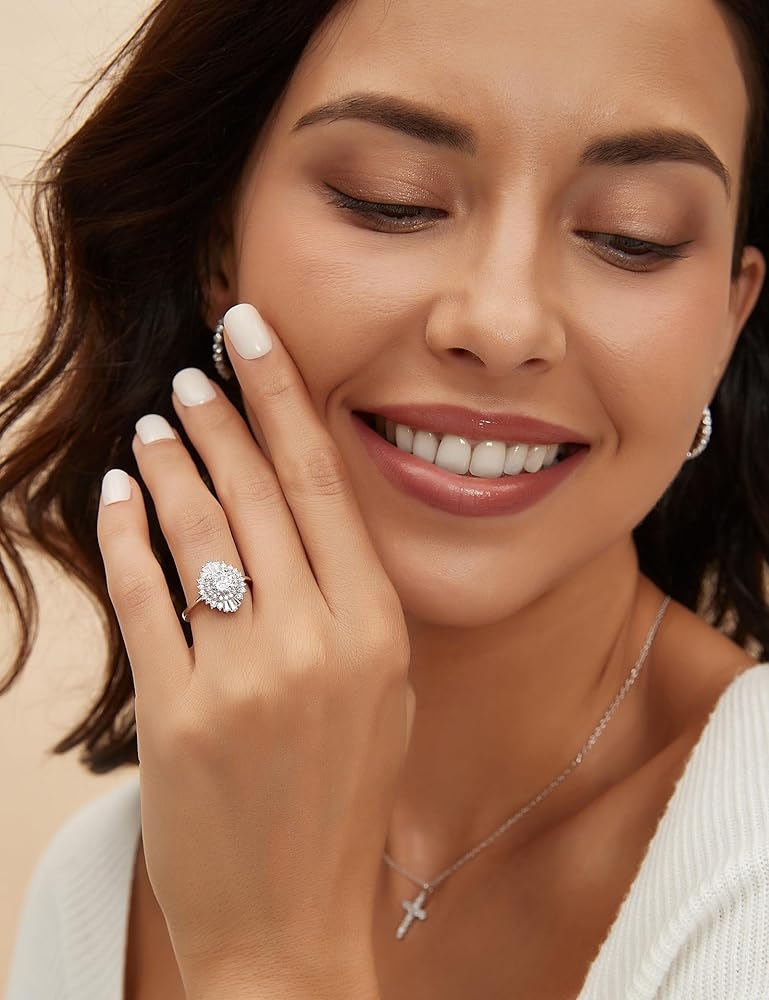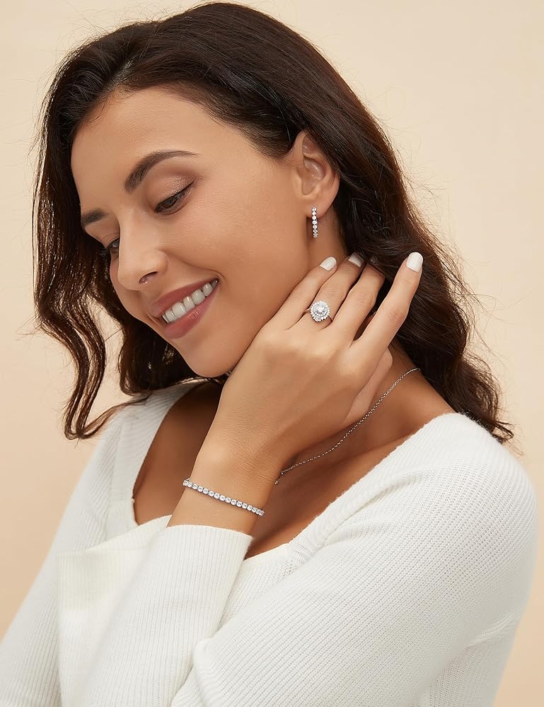 المواصفات: AAAAA مكعب زركونيا مقلد خواتم زفاف دائرية للنساء. خاتم أصلي من الفضة الإسترلينية عيار 925 مطلي بالذهب الأبيض، يبدو حقيقيًا ويتألق مثل خواتم الماس الطبيعية