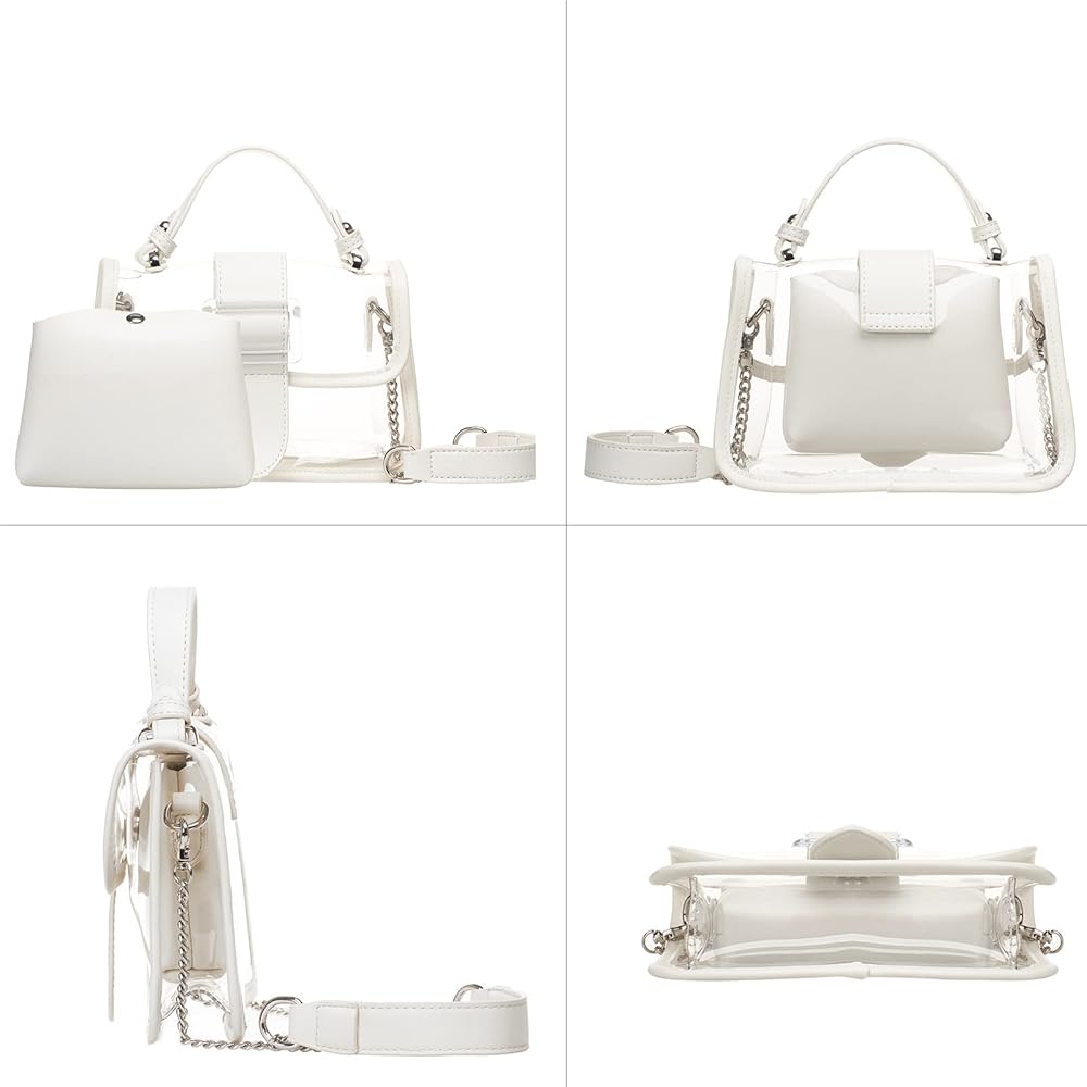 👝【Womens 2 In 1 Clear Bag Material】Transparent jelly shoulder bag made with high quality thick clear pvc material, which is waterproof and easy clean. Durable clear PVC material well store your belongs safe. Several candy colors for your choice.