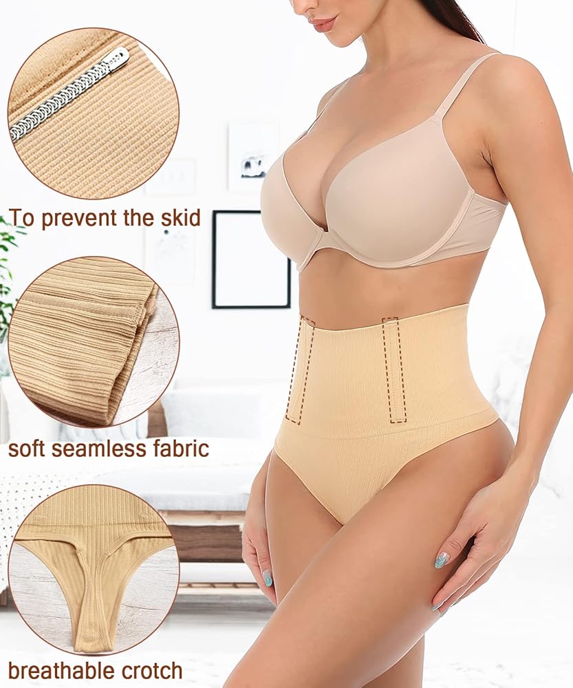 ملابس داخلية ثونغ للتحكم في البطن، ملابس داخلية لرفع الورك للنساء، ملابس داخلية نحيفة عالية الخصر بدون خياطة