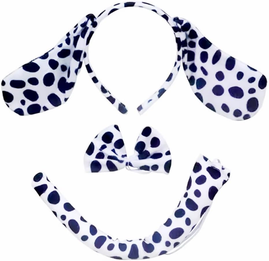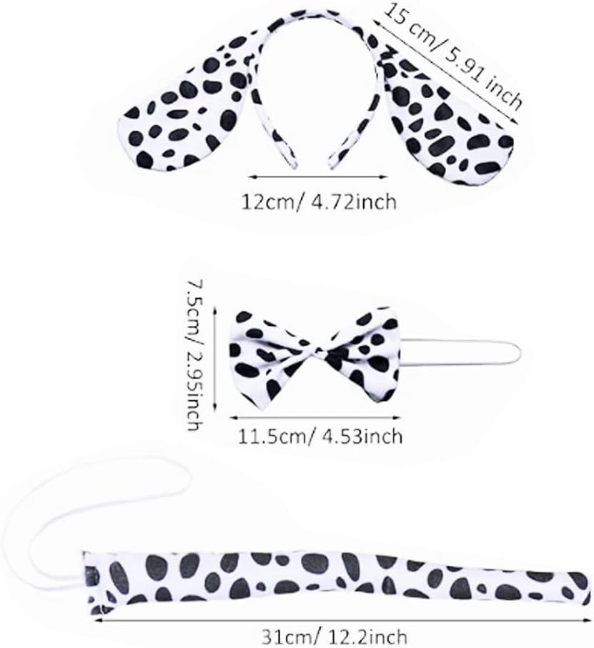 McFadyon Dalmatian Costume Set with Dog Ear Headbands, Bow Tie, Tail for Christmas Halloween New Year Cosplay Costume or Party Decoration