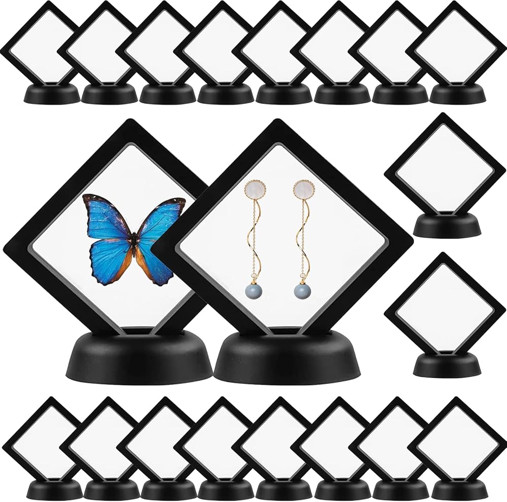 BALLETBYM 20 علبة عرض إطار عائم ثلاثي الأبعاد، حوامل عرض العملات المعدنية، إطارات عائمة سوداء ثلاثية الأبعاد لحلق قلادة سوار، ميدالية AA، أصداف، حفريات، أحجار كريمة، معادن، صخور
