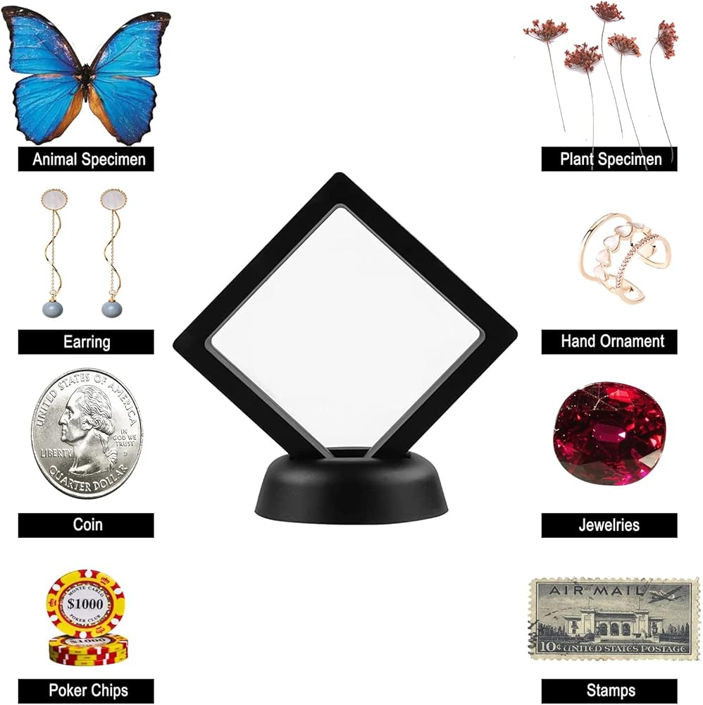 20 Pack 3D Floating Frame Display Case, Coin Display Holder Stands, Black 3D Floating Frames for Ring Necklace Bracelet Earring, AA Medallion, Shells, Fossils, Gemstones, Minerals, Rocks, Military Coin Challenge Coin, 3.5" x 3.5" x 0.8"