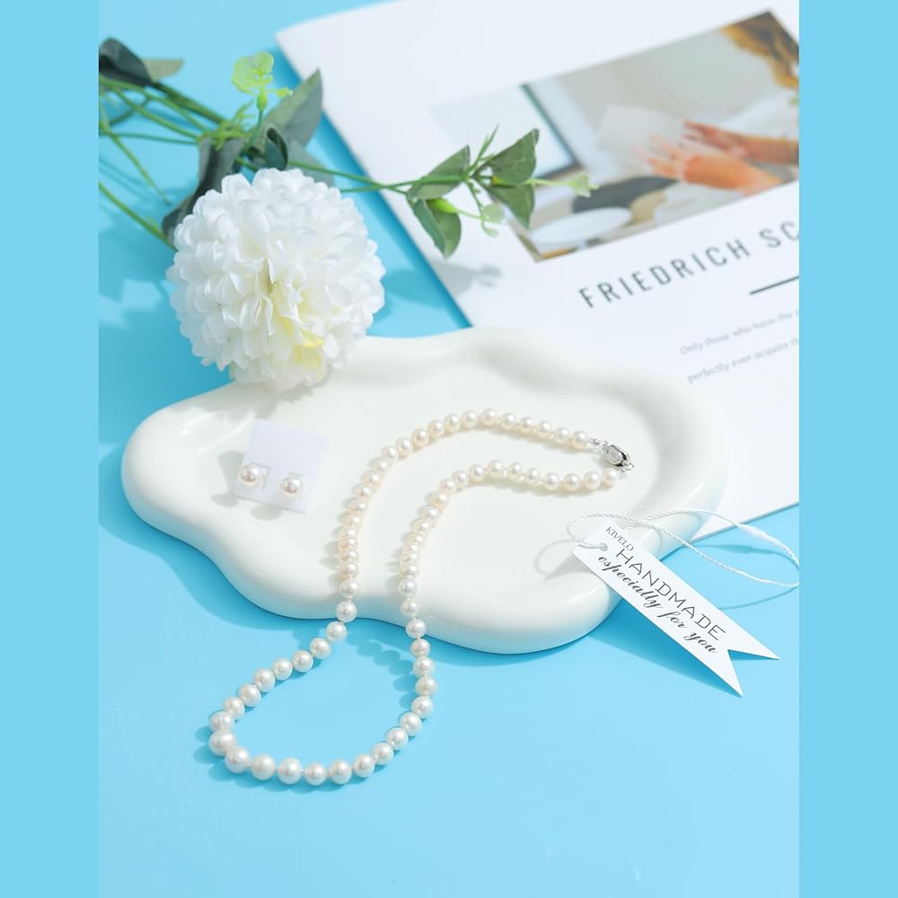 أناقة لا تتأثر بمرور الزمن: مجموعة عقد اللؤلؤ الكلاسيكية للسيدات هذه ضرورية لمجموعة مجوهرات الجميع. تتضمن قلادة لؤلؤ مقاس 18 بوصة 5-9 مم، وأقراط لؤلؤ 8 مم. الأناقة في الجمال ستكون إضافة مذهلة لأي زي، سواء كانت ملابس رسمية أو ملابس يومية غير رسمية، تزيد من بريقك الأنثوي ومزاجك، وتجعلك محط الأنظار في أي مناسبة.|| اللؤلؤ المستزرع، قلادة لؤلؤ المياه العذبة، قلادات لؤلؤ المياه العذبة