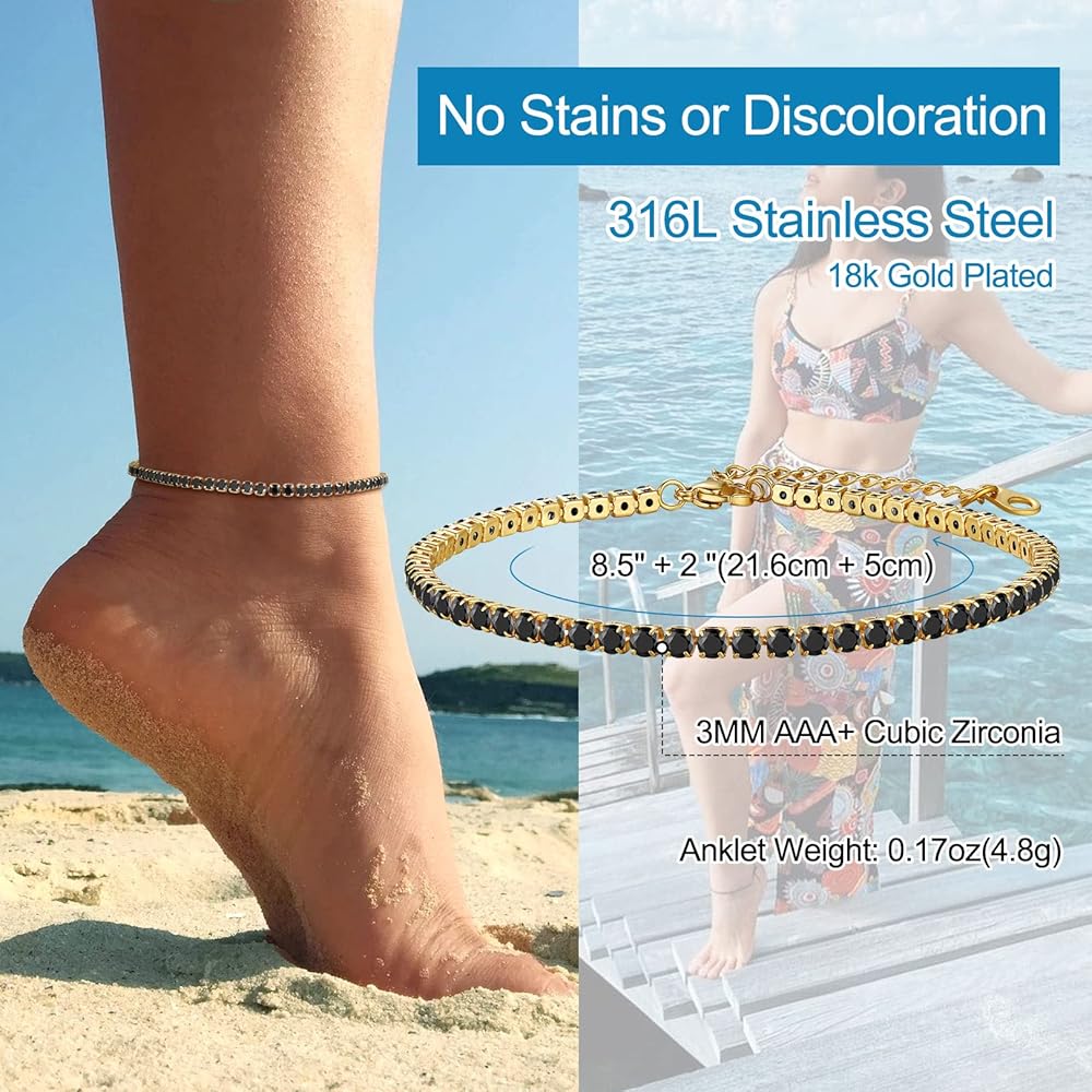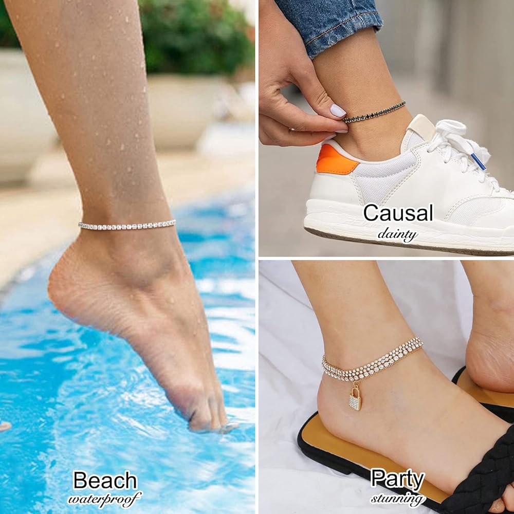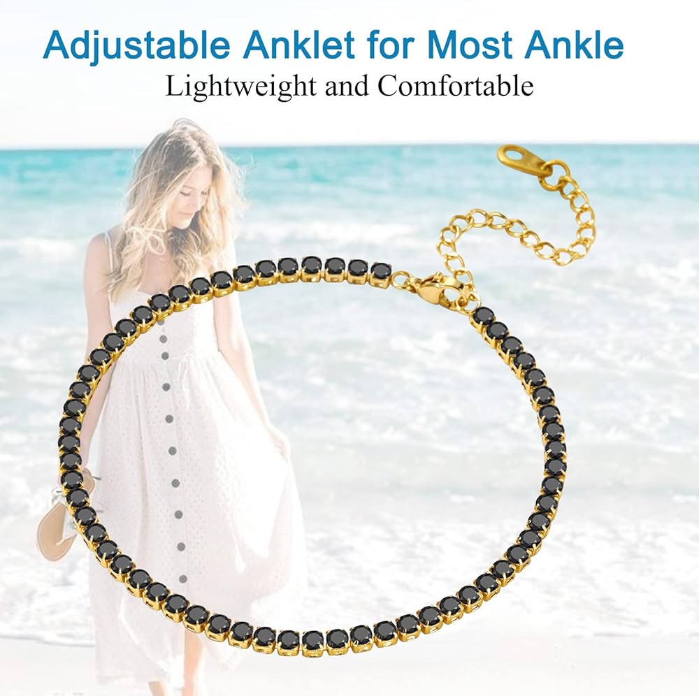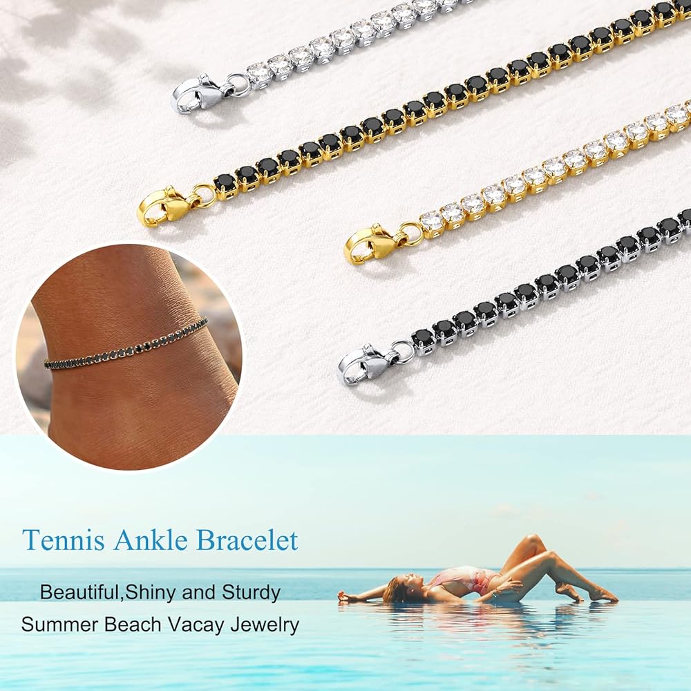 أساور خلخال تنس بسيطة وكلاسيكية للنساء، سوار كاحل مثالي مقاوم للتلطيخ للشاطئ والشاطئ. يمكنك ارتداؤه بمفرده أو تنسيقه مع خلخال آخر.