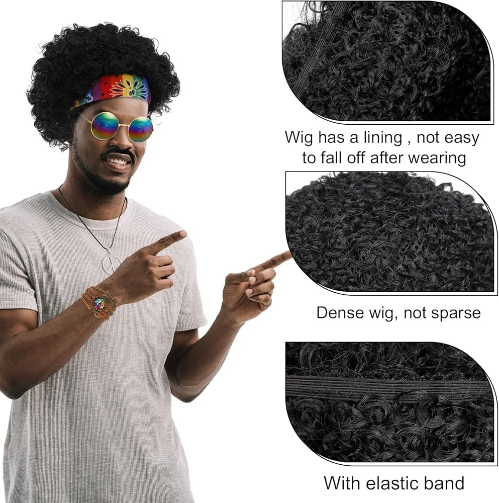 • خامة عالية الجودة: الشعر المستعار الأفريقي غير التقليدي له بطانة، ليس من السهل أن يسقط بعد ارتدائه. عصابة رأس هيبي مصنوعة من القماش وطويلة بما فيه الكفاية. قلادة وسوار علامة السلام مصنوعة من البلاستيك والمعدن، وتتميز بنمط دائري لعلامة السلام مع تصميم شريط قابل للتعديل. أكمل مظهر الورك مع النظارات الشمسية الرائعة والعتيقة.