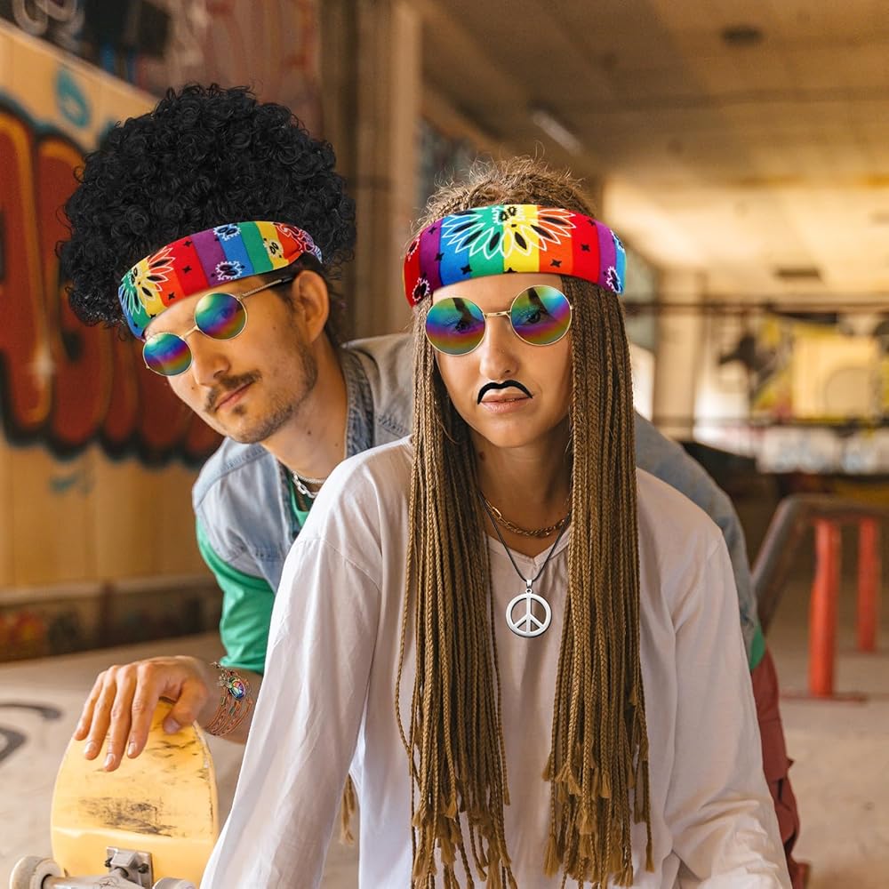 • مستلزمات الحفلات المثالية: عناصر متعددة الألوان كافية لارتداء الهيبي الخاص بك ومشاركتها مع عائلتك وأطفالك وأصدقائك وغيرهم، وتظهر روح الهيبي في الستينيات والسبعينيات، وتجعلك محط الأنظار في الحفلة المميزة، كما أنها خيار هدية رائع لأصدقائك وعائلتك.