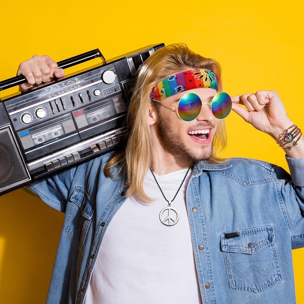 • الاستخدام على نطاق واسع: إكسسوارات أزياء هيبي الرجالية مثالية لحفلات الفساتين الفاخرة، والهالوين، والكريسماس، وحفلات أعياد الميلاد، وحفلات الديسكو، ومهرجانات الموسيقى والمزيد!