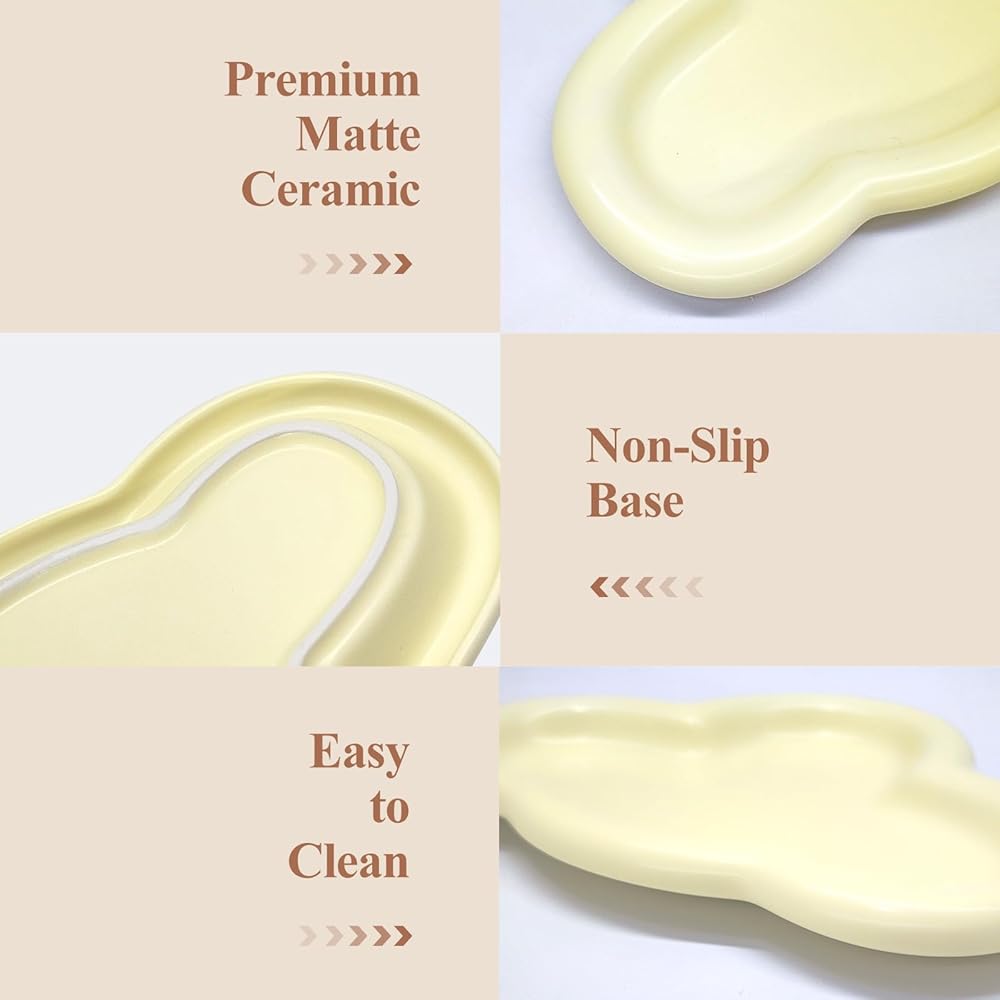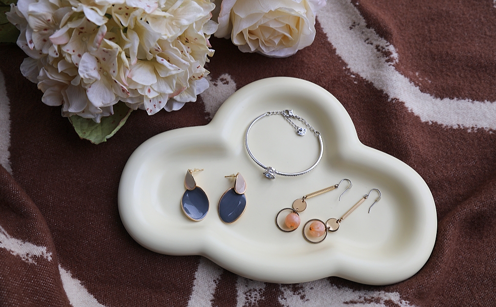 • 【المادة والمقاس】مصنوعة من السيراميك الفاخر، يبلغ مقاس صينية المجوهرات 9.6 سم عمقًا، و16.4 سم عرضًا، و0.9 سم ارتفاعًا.
