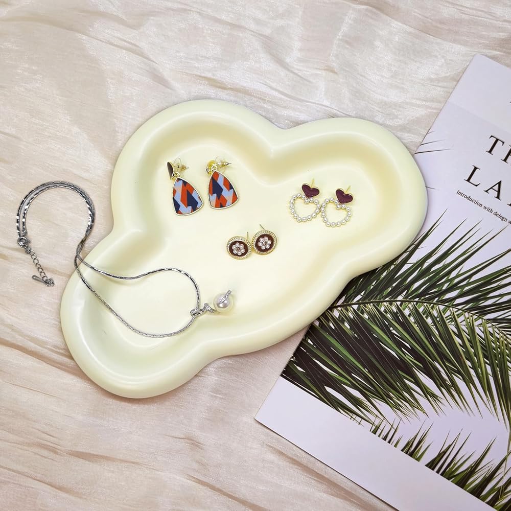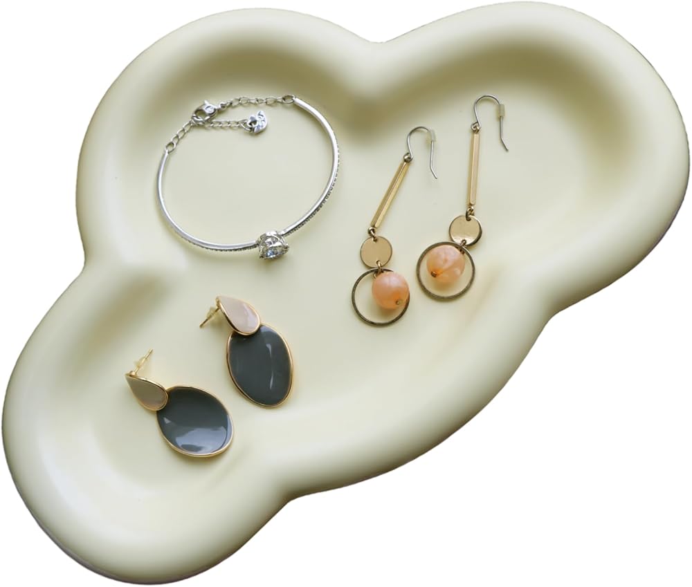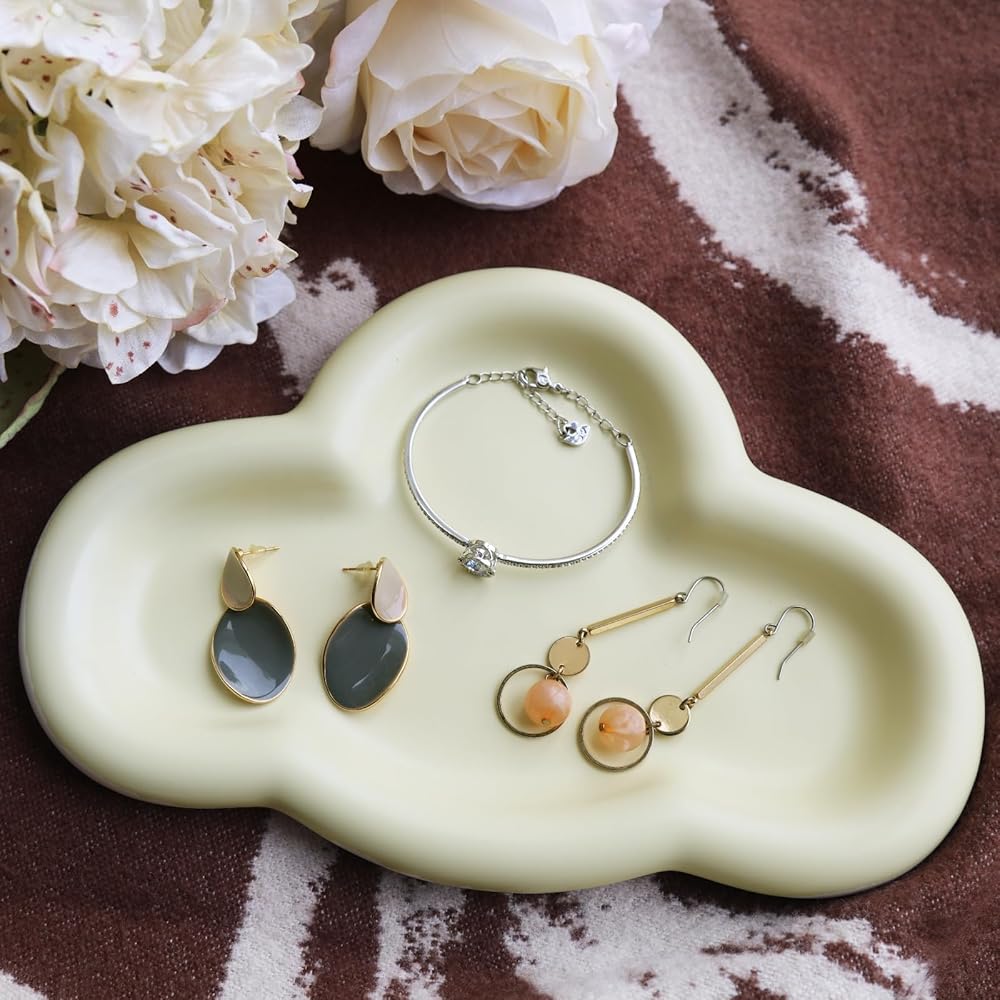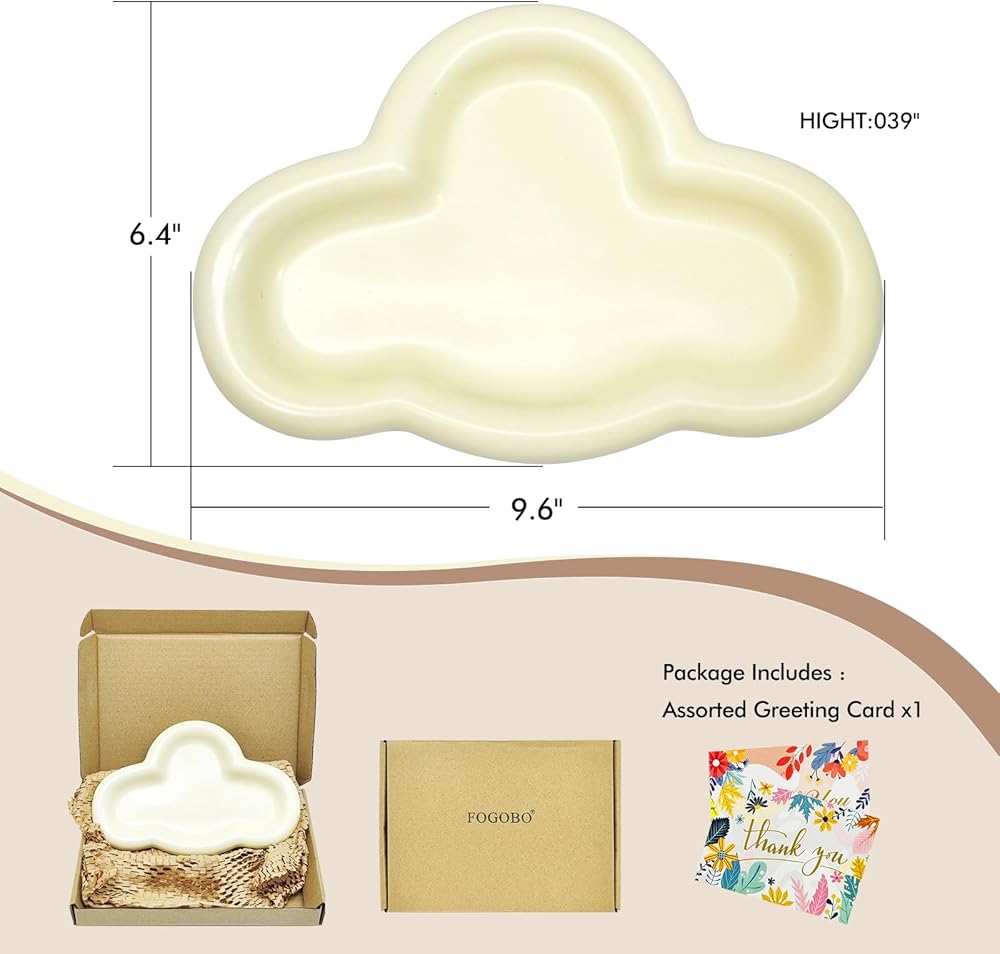 طبق صينية مجوهرات من السيراميك على شكل سحابة من FOGOBO مع بطاقة تهنئة - لوحة أنيقة للخاتم والمفتاح والحلي - هدية مثالية للنساء والصديقة والزوجة والصديق في عيد الميلاد والكريسماس وعيد الشكر
