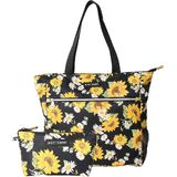 حقيبة حمل الشاطئ بسحاب من Betsey Johnson مقاس 15.6 بوصة مع حقيبة مستحضرات تجميل بوليستر خفيف الوزن وكبير ومتين مع جيوب جانبية شبكية للعمل في صالة الألعاب الرياضية، وردة مغطاة