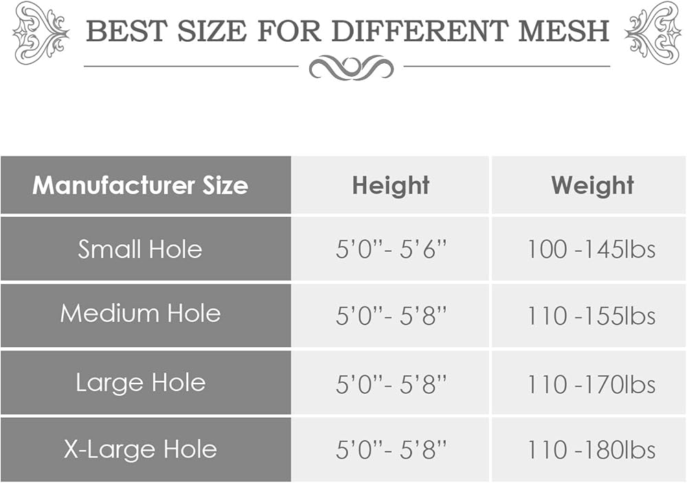 أحجام مختلفة من الثقوب سيكون لها تأثيرات مرنة مختلفة، الشبكة الأصغر أكثر ملاءمة للحجم الصغير.
