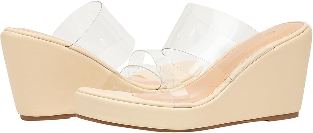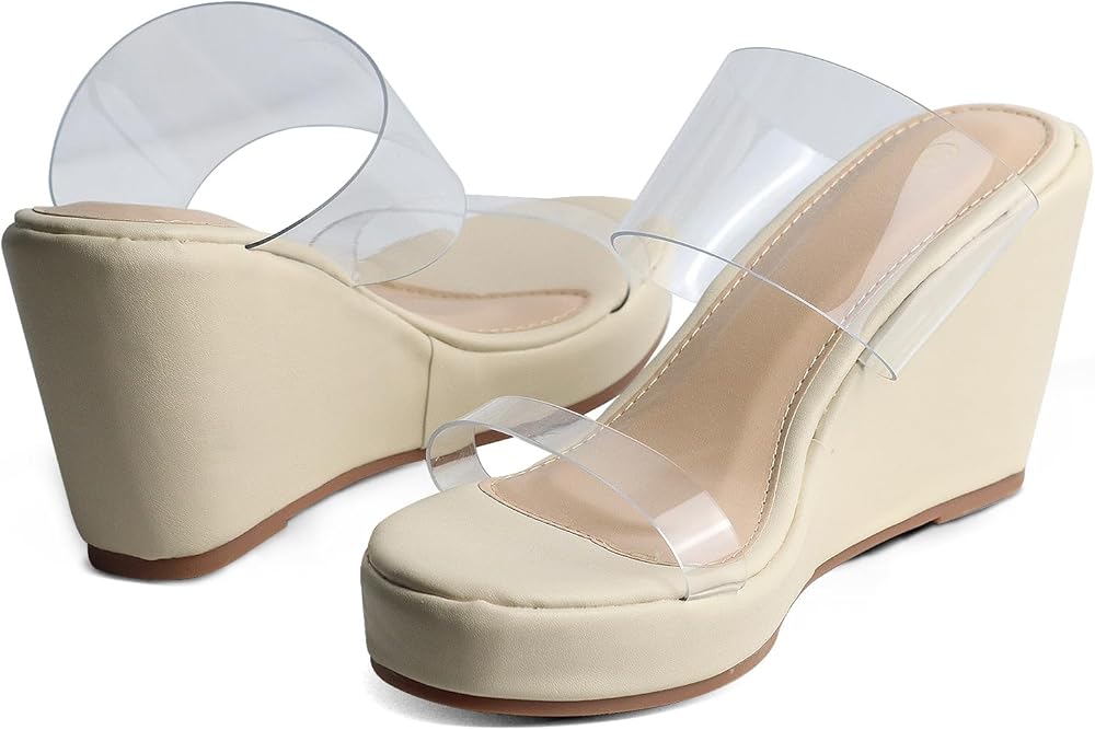 【Heel Height】Wedge heel height 3.15", platform height 1.18". Perfect heel height, relatively comfortable for being a platform wedge heel. Slide sandals for women are elegant and not tired.