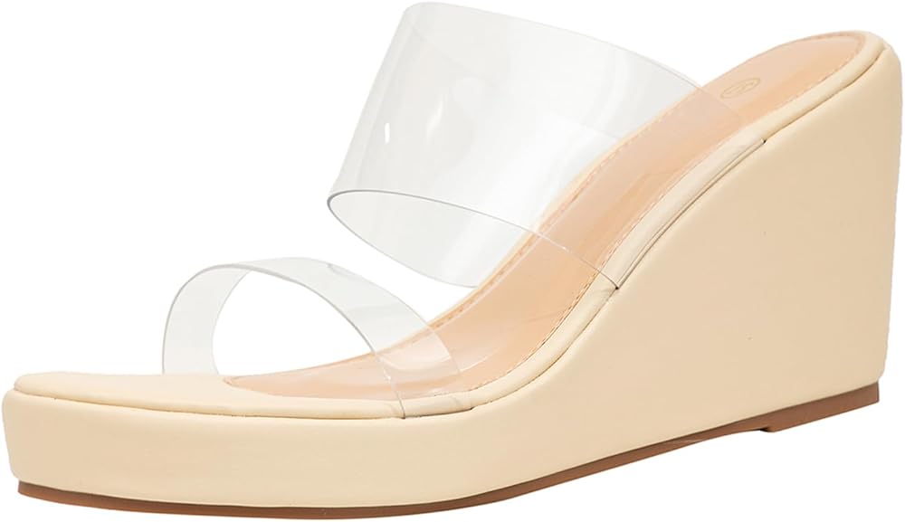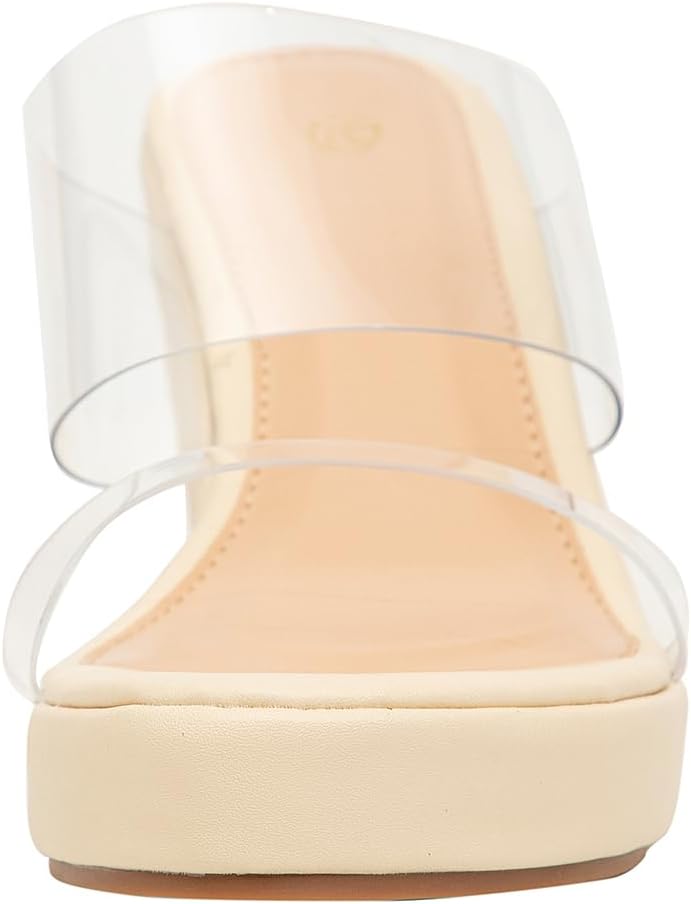 【Peep Toe & Double Clear Straps & Backless Slip on】open-back slip on style, mule sandals are more convenient to put on and off; Peep toe design, make your feet more breathable and cool, add a touch of coolness to the hot summer.
