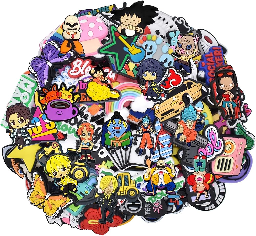 - Each set has 50pcs random anime charms, decorate your shoes to make them unique, funny and beautiful.