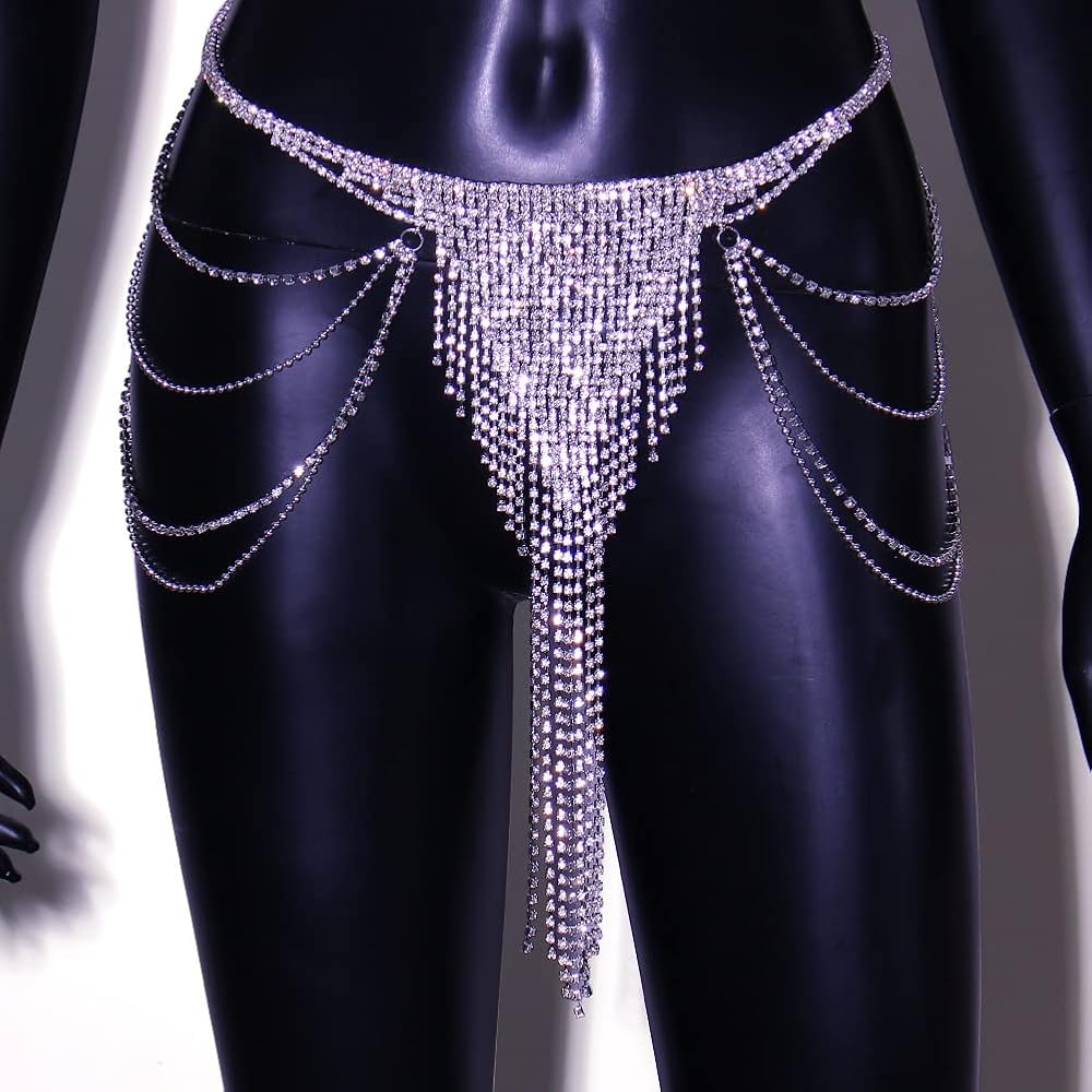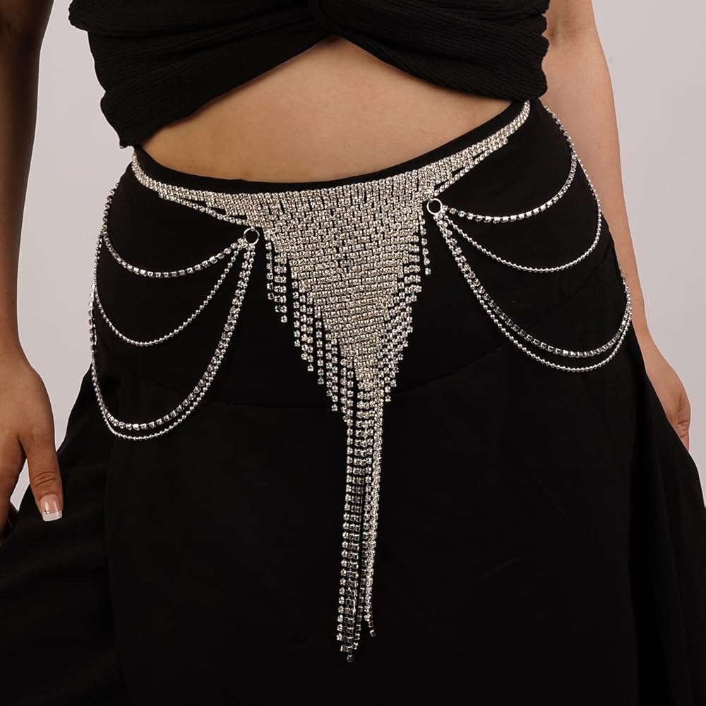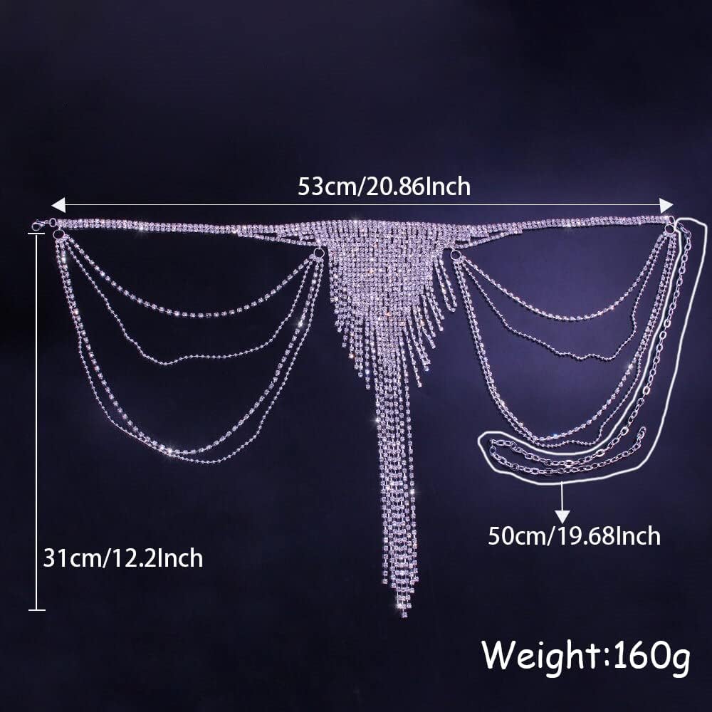 Rumtock سباركلي كريستال الفضة تنورة رقص سلسلة طويلة شرابة الخصر سلسلة ل الهذيان ملهى ليلي بوهو الجسم سلسلة للنساء الفتيات