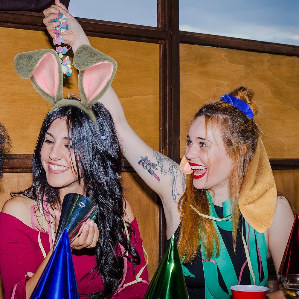 مريحة عند اللمس - عصابة الرأس ذات أذني الأرنب مصنوعة من نسيج قطيفة ناعم ولا تحتوي على فراء حيواني. عصابة الرأس الزرقاء مع آذان أرنب بنية وأذنين داخلية وردية تبدو لطيفة جدًا وسيضيف إكسسوار زي الأرنب الممتاز هذا المرح والأجواء إلى حفلتك بالتأكيد.