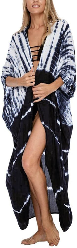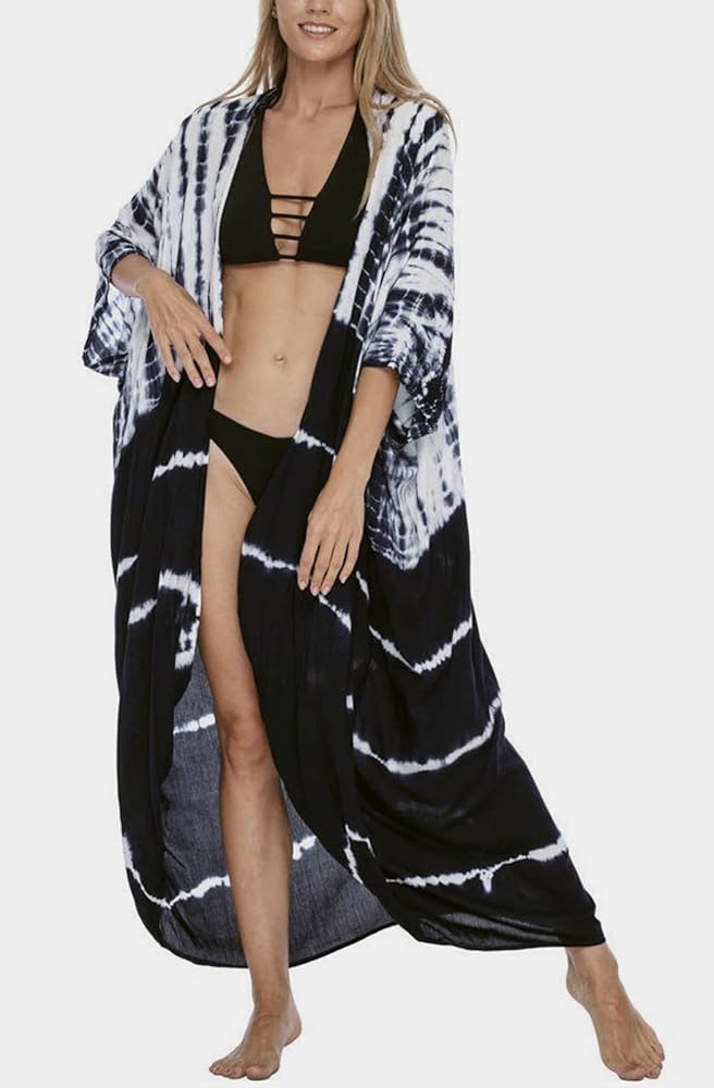 ملابس سباحة نسائية من Hunt ملابس سباحة للشاطئ مع ربطة عنق وصبغ مفتوح من الأمام طويل كيمونو بكيني ملابس للشاطئ ملابس استحمام مع حزام