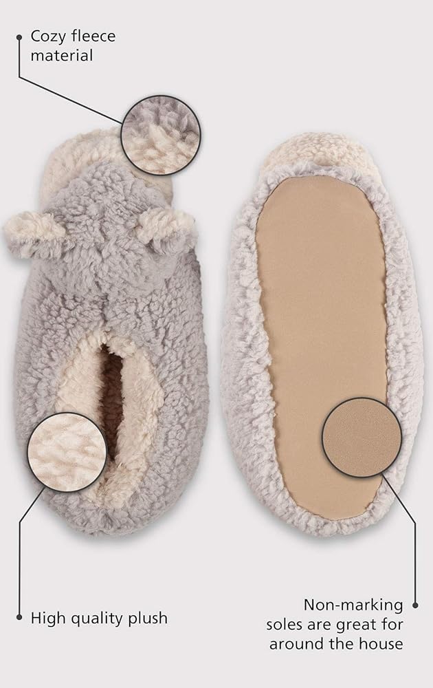 ألوان هادئة - تجمع بشكل مثالي بين الرقي مع هذه الأحذية المرحة، وهي مثالية للجميع. نعال غريبة الأطوار باللون الكريمي الرقيق والرمادي الرائع ستتناسب مع أي بيجامة بسهولة؛ ويكونون طيبي القلب دون أن يكونوا طفوليين