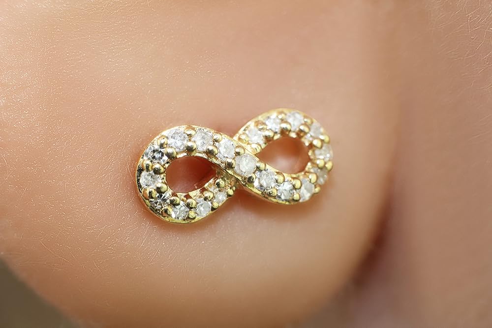 • لافتة للنظر: ذهب أصفر عيار 14 قيراط 52 ماسة طبيعية غير معالجة عالية الجودة تزن إجمالي 0.98 قيراط الوزن الإجمالي على شكل فراشة آمن تصميم القرط المرصع إنفينيتي هو رمز للحب والصداقة والإخلاص الذي لا ينتهي.