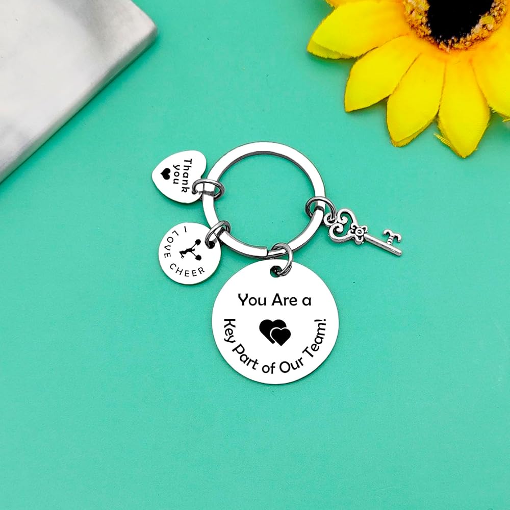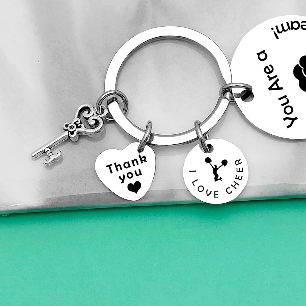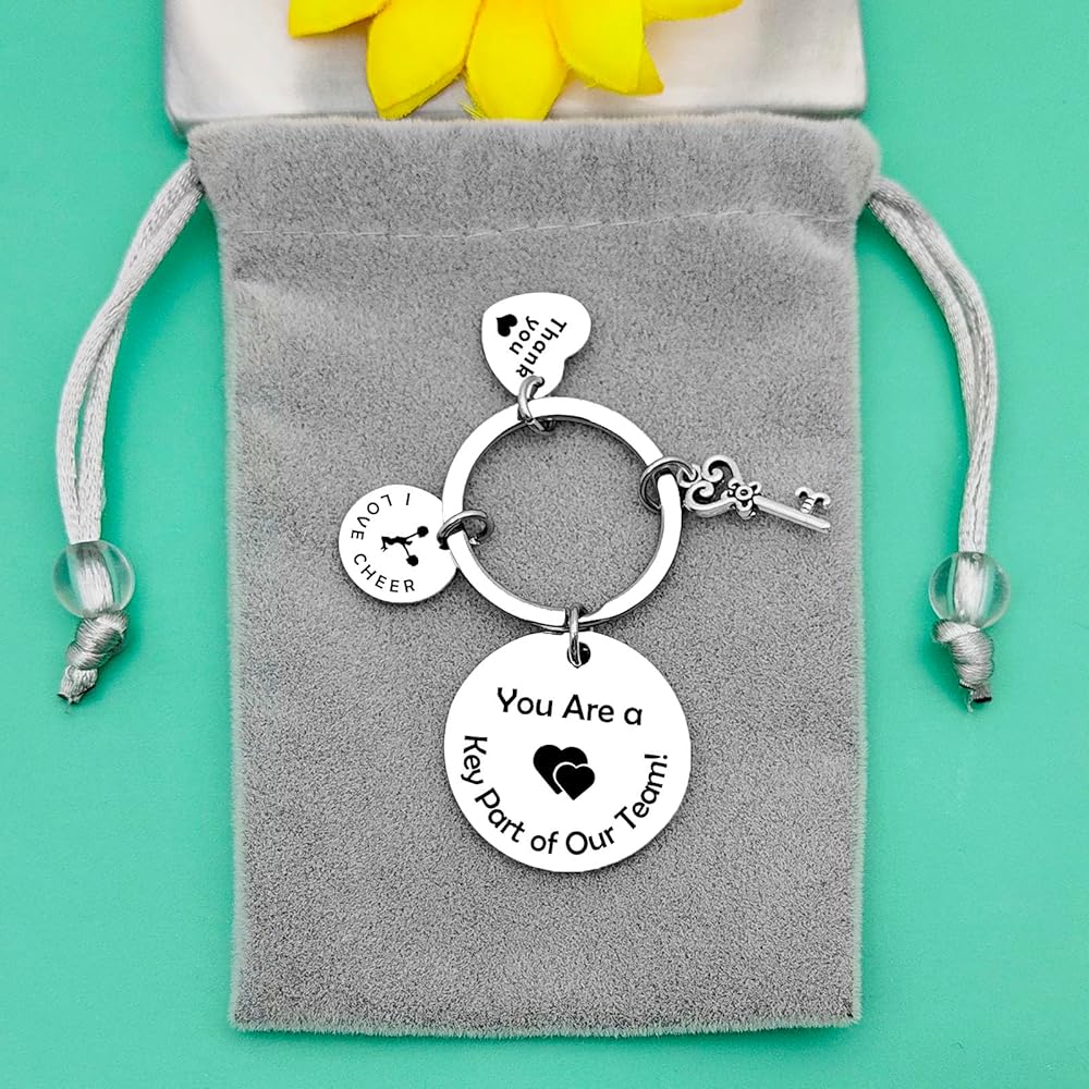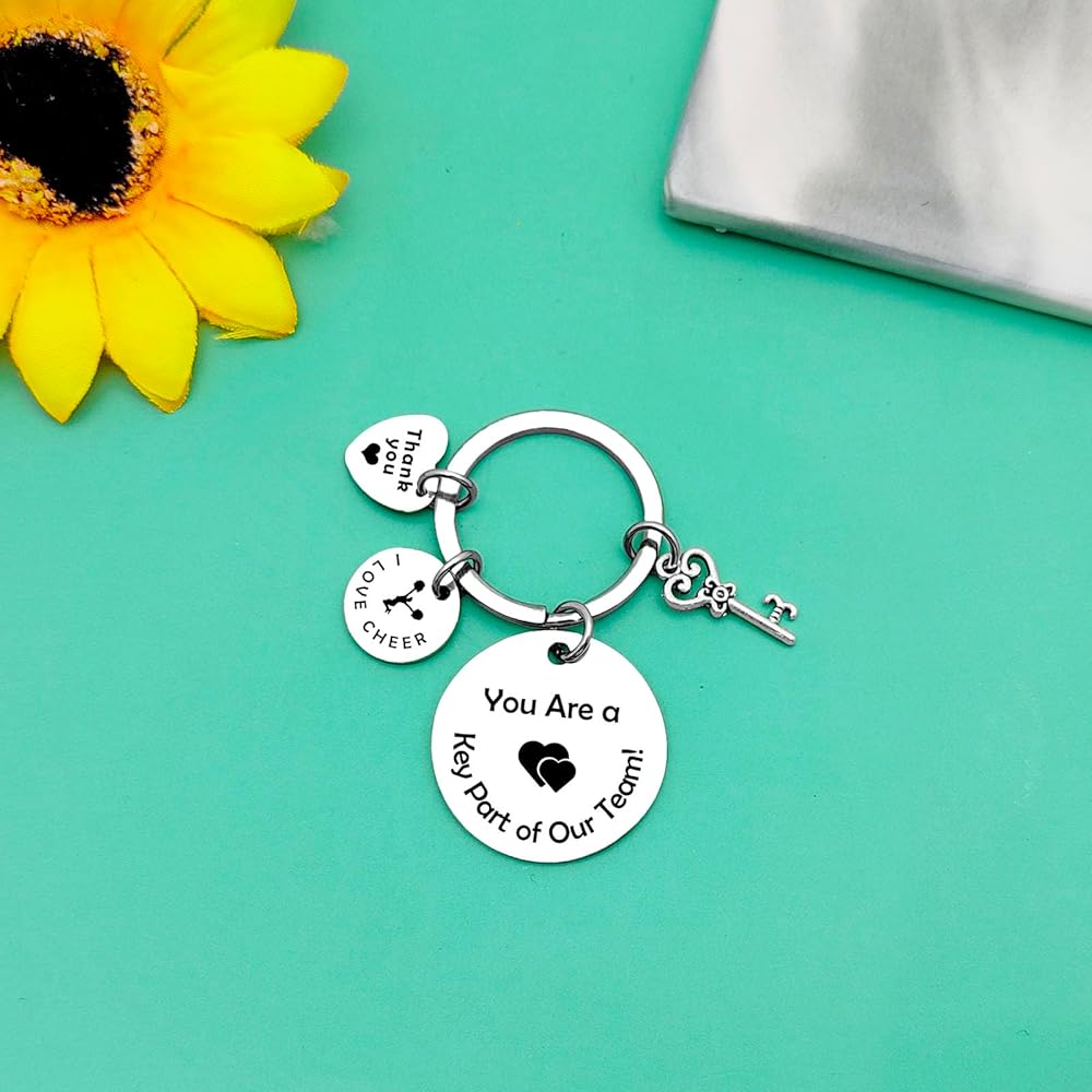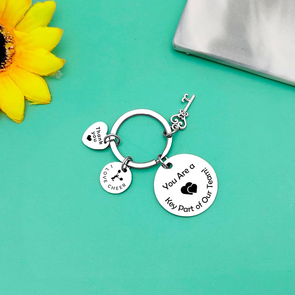 • Cheer Charm Keychain :Cheerleader Keychains Gifts is printed with"You are a key part of our team! / thank you". These cheer team keychain are best friendship cheer gifts for girls, women,cheerleaders,boys.
