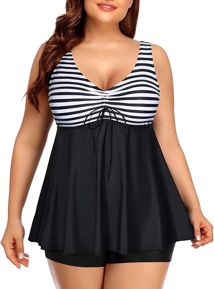 ملابس سباحة بمقاس كبير للنساء: قطعة علوية للاستحمام مع تصميم عقدة ربطة عنق مناسبة للنساء اللاتي يرغبن في إخفاء بطنهن. يجعلك تبدو أقل حجما.