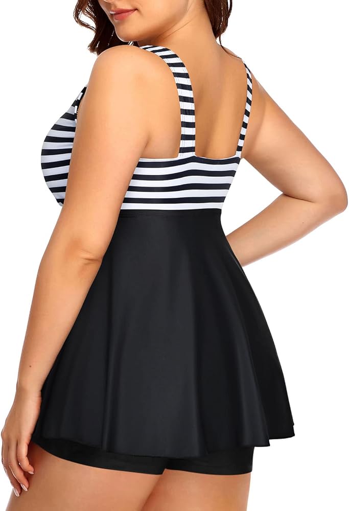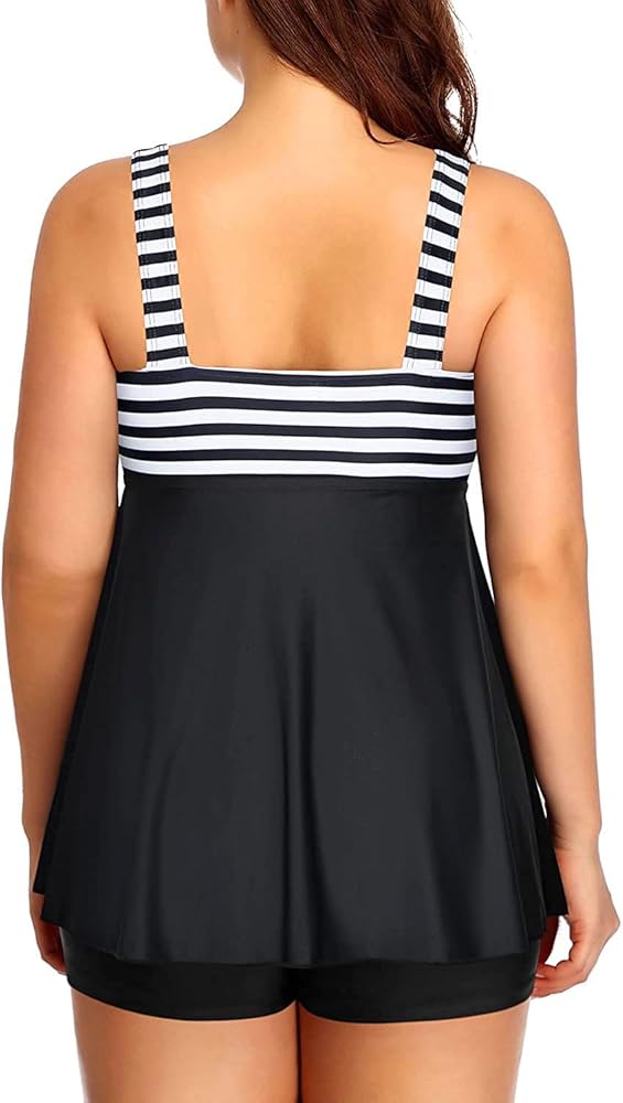 بدلة سباحة من قطعتين للنساء: الجزء العلوي للسباحة بأشرطة كتف عريضة مع خصر عالٍ للتحكم في البطن وأسفل ساق الصبي بنمط التغطية الكاملة يوفر لك شعورًا بالأمان.